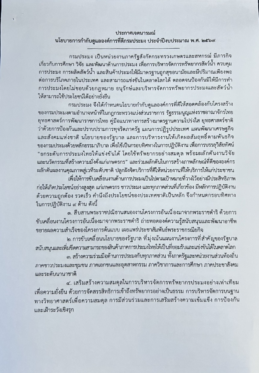 NEW ประกาศกรมประมง เรื่อง นโยบายการกำกับดูแลองค์กรที่ดี กรมปรมง ประจำปีงบประมาณ พ.ศ. 2569..คลิก