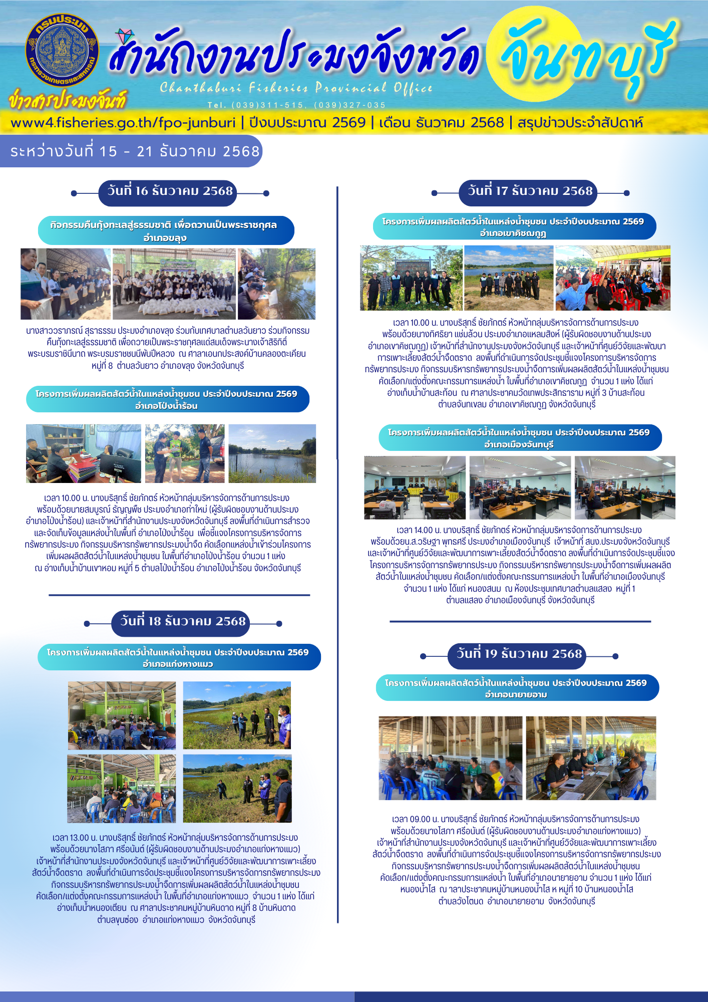 NEW สรุปข่าวสารประมงจันท์ รายสัปดาห์ (วันที่ 1 - 21 ธันวาคม 2568)..คลิก