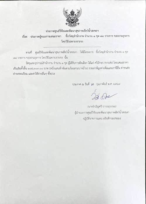 ประกาศผู้ชนะการเสนอราคา ซื้อวัสดุสำนักงาน จำนวน ๑ ชุด ๗๘ รายการ ของงานธุรการ โดยวิธีเฉพาะเจาะจง