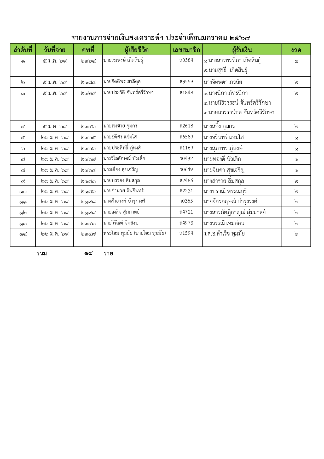 - รายงานการจ่ายเงินสงเคราะห์กรมประมง ประจำเดือนมกราคม 2569