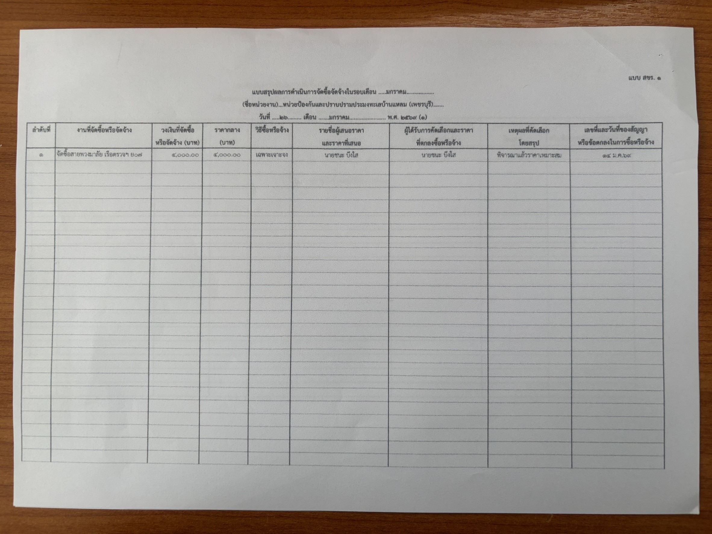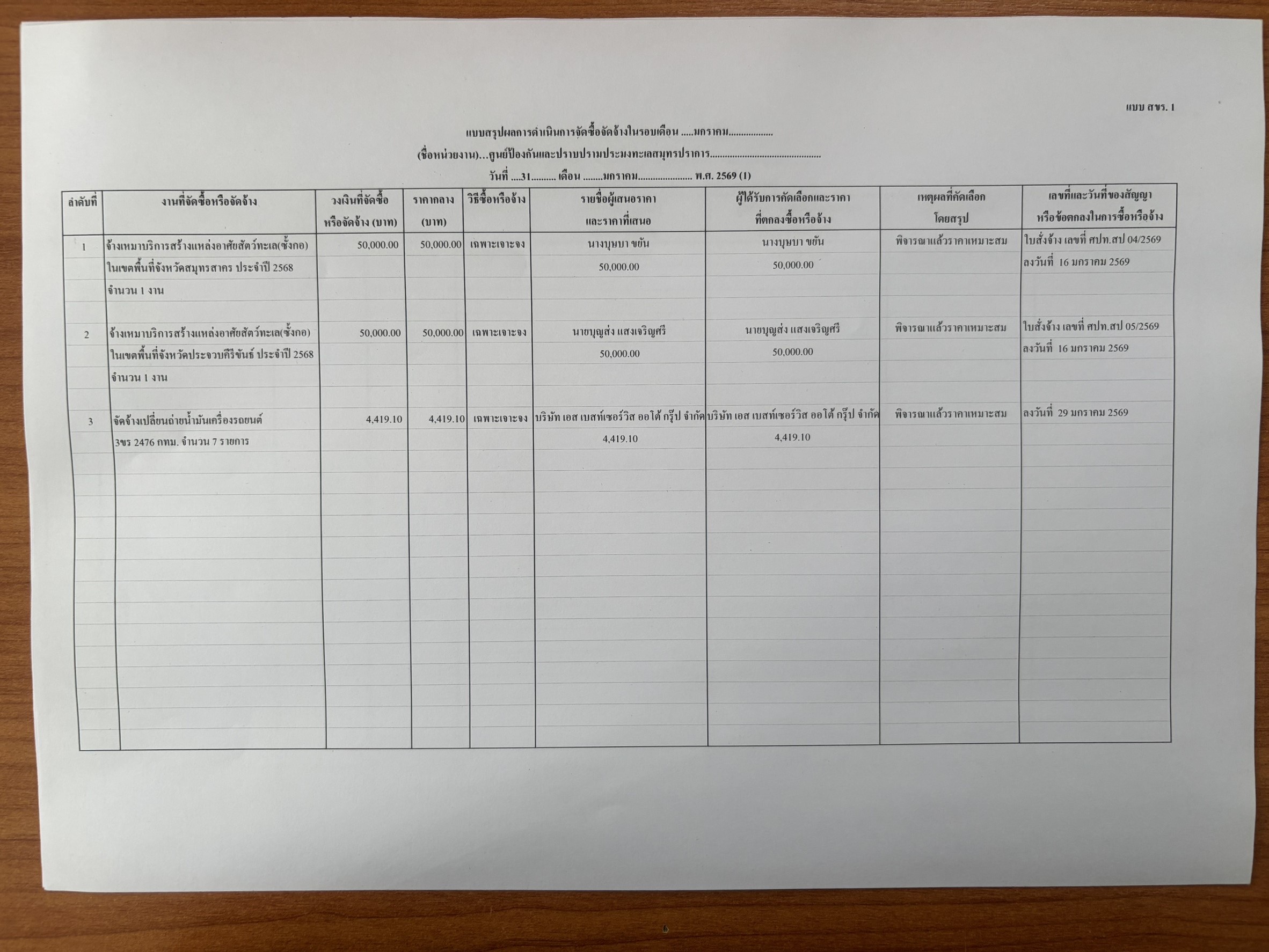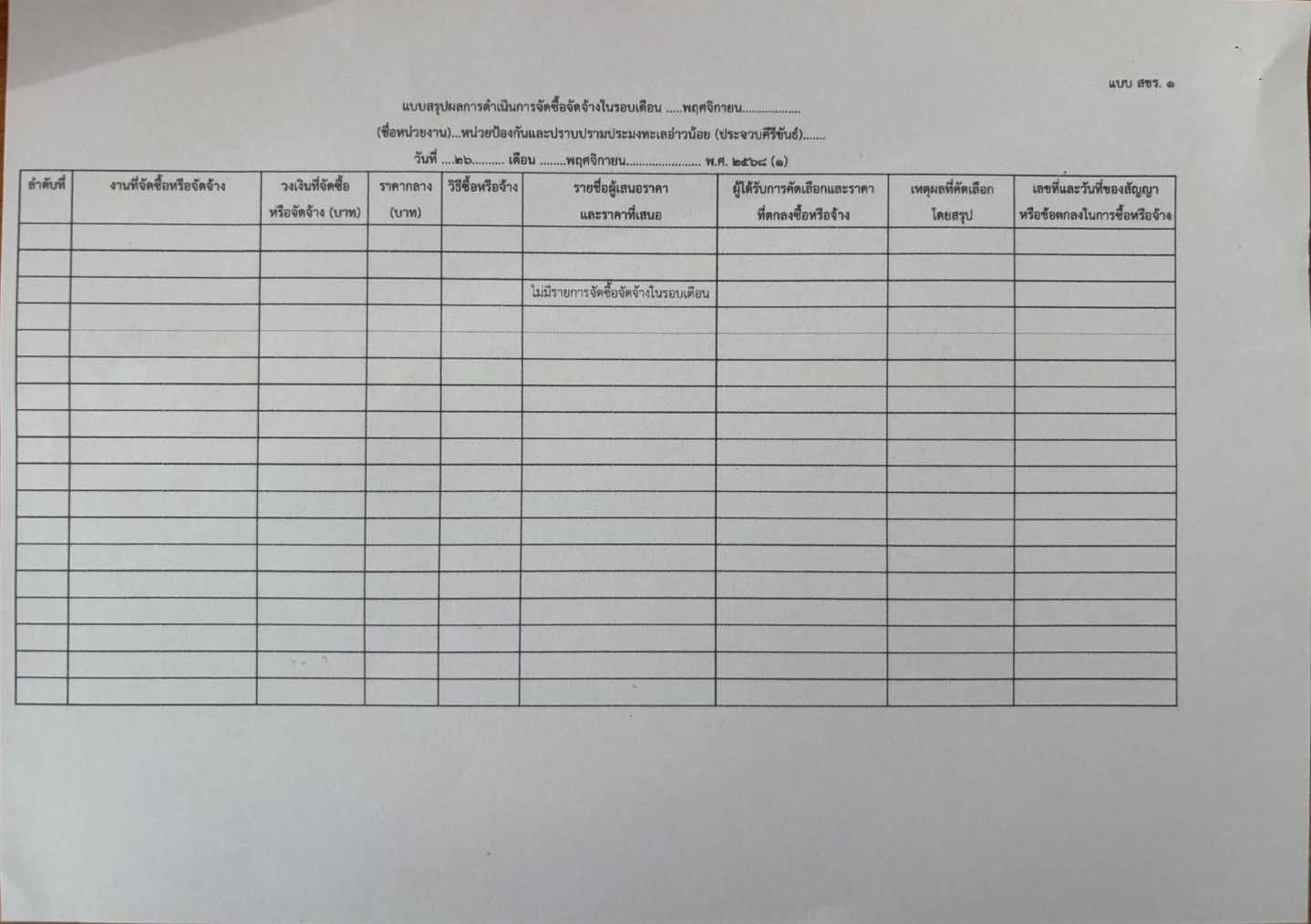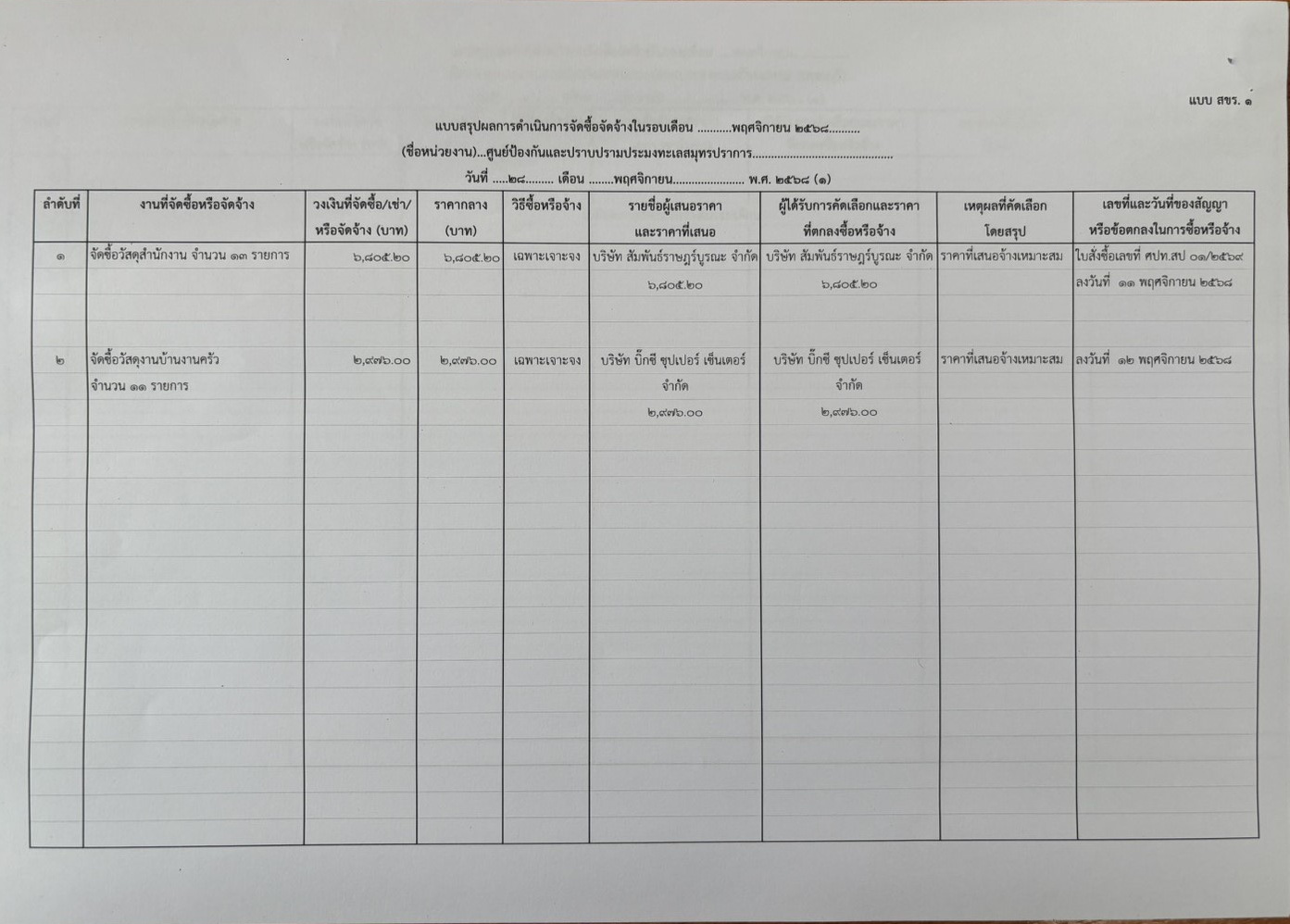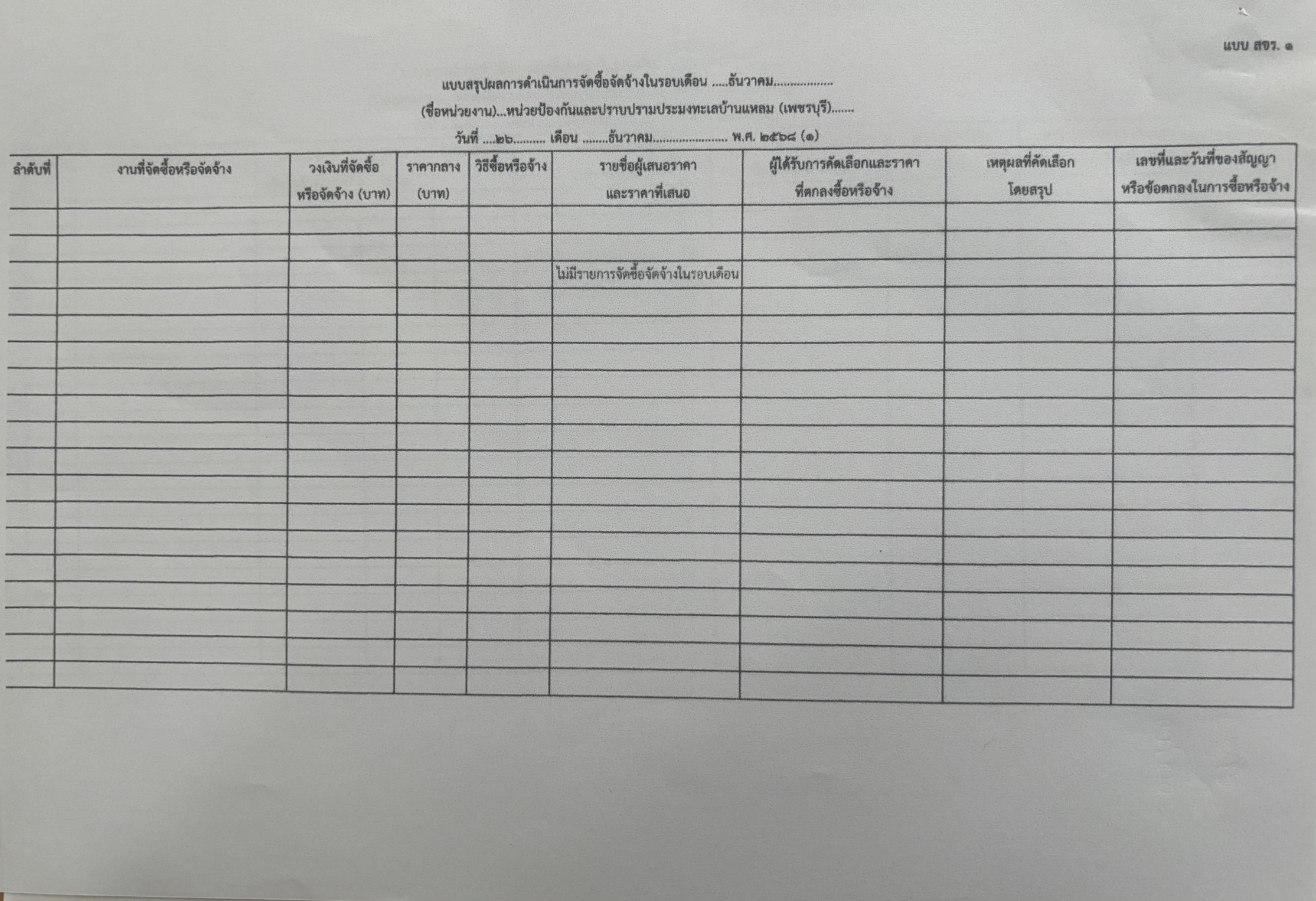สรุปผลการดำเนินการจัดซื้อหรือจัดจ้าง (สขร.1) ประจำปีงบประมาณ 2569