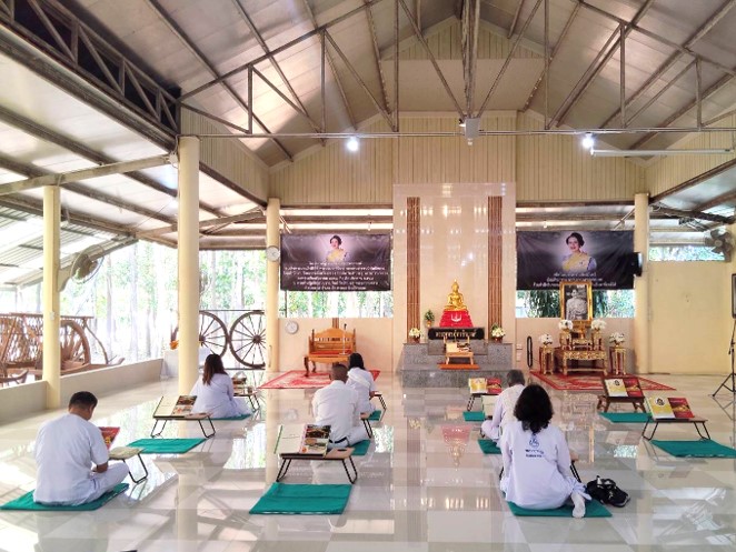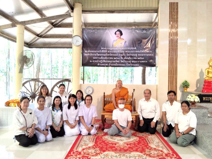 นางนันทวัน ศานติสาธิตกุล ผู้อำนวยการศูนย์วิจัยและพัฒนาการเพาะเลี้ยงสัตว์น้ำชายฝั่งระยอง มอบหมายให้ นางปริญญา สุทธินนท์ และเจ้าหน้าที่ศูนย์ฯ เข้าร่วมกิจกรรมปฏิบัติธรรม ณ สวนป่าปฏิบัติธรรมบุราณรัตน์ วัดป่าประดู่ พระอารามหลวง