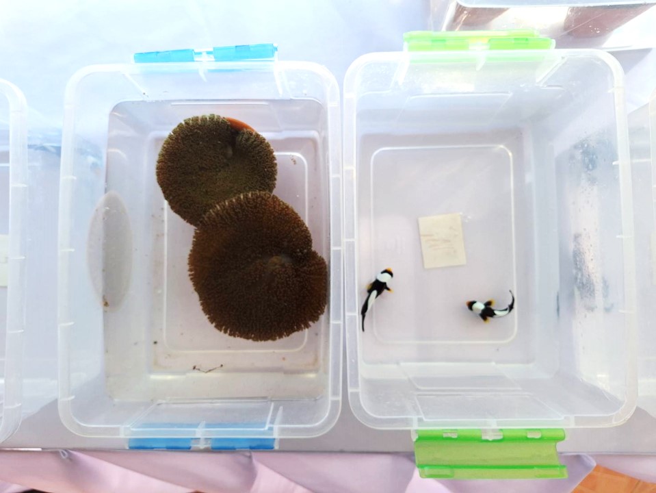 นางนันทวัน  ศานติสาธิตกุล ผู้อำนวยการศูนย์วิจัยและพัฒนาการเพาะเลี้ยง สัตว์น้ำชายฝั่งระยอง พร้อมด้วยเจ้าหน้าที่ศูนย์ฯ ร่วมกิจกกรรมปล่อยพันธุ์สัตว์น้ำ ดอกไม้ทะเล ชนิด Stichodactyla haddoni