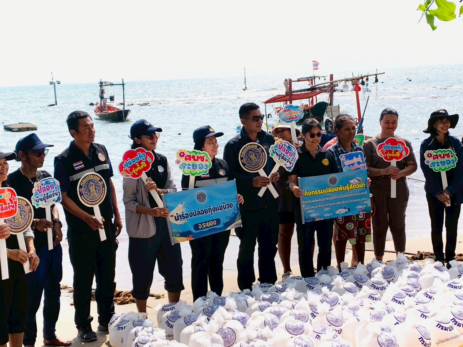 โดยปล่อยลูกพันธุ์กุ้งแชบ๊วย ขนาด PL13 จำนวน 5,715,00 ตัว ณ บริเวณชายฝั่งทะเลอ่าวละมุ (บ้านหินสวย–น้ำใส) ต.ชากพง อ.แกลง จ.ระยอง ภายใต้โครงการบริหารจัดการทรัพยากรประมง กิจกรรมผลิตพันธุ์สัตว์น้ำทะเล ประจำปีงบประมาณ พ.ศ.2569