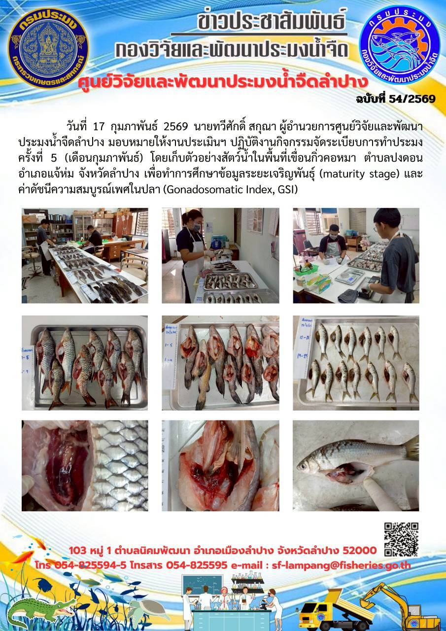 [2026-02-25] ดำเนินการติดตามตรวจสอบผลกระทบสิ่งแวดล้อมโครงการประตูระบายน้ำแม่น้ำวังบ.. [2026-02-25] ร่วมกิจกรรมจิตอาสาพัฒนา เนื่องในวันคล้ายวันพระราชสมภพพระบาทสมเด็จพระพุ.. [2026-02-25] ร่วมพิธีเปิดโครงการคลินิกเกษตรเคลื่อนที่ในพระราชานุเคราะห์สมเด็จพระบรม.. [2026-02-25] ปฏิบัติงานกิจกรรมจัดระเบียบการทำประมง ครั้งที่ 5 (เดือนกุมภาพันธ์).. [2026-02-25] ดำเนินการติดตามตรวจสอบผลกระทบสิ่งแวดล้อม โครงการอ่างเก็บน้ำแม่นึงอันเน.. [2026-02-25] ปล่อยพันธุ์ปลาบึก ปลานิล ปลาสร้อยขาว และปลากาดำ ในแหล่งน้ำโครงการการเพ.. [2026-02-25] ปฏิบัติงานตรวจรับรองมาตรฐานฟาร์มเพาะเลี้ยงสัตว์น้ําจืดตามมาตรฐาน มกษ.7.. [2026-02-25] ประชุมติดตามความก้าวหน้าการดำเนินโครงการวิจัยตามคำรับรอง ประจำปีงบประม.. [2026-02-24] ปล่อยพันธุ์ปลาบึก โครงการการเพิ่มผลผลิตสัตว์น้ำในแหล่งน้ำชุมชนเพื่อเพิ.. [2026-02-24] ตรวจสอบห้องเย็นตามนโยบายกระทรวงเกษตรและสหกรณ์ ในการขับเคลื่อนยุทธการปร.. อ่านทั้งหมด