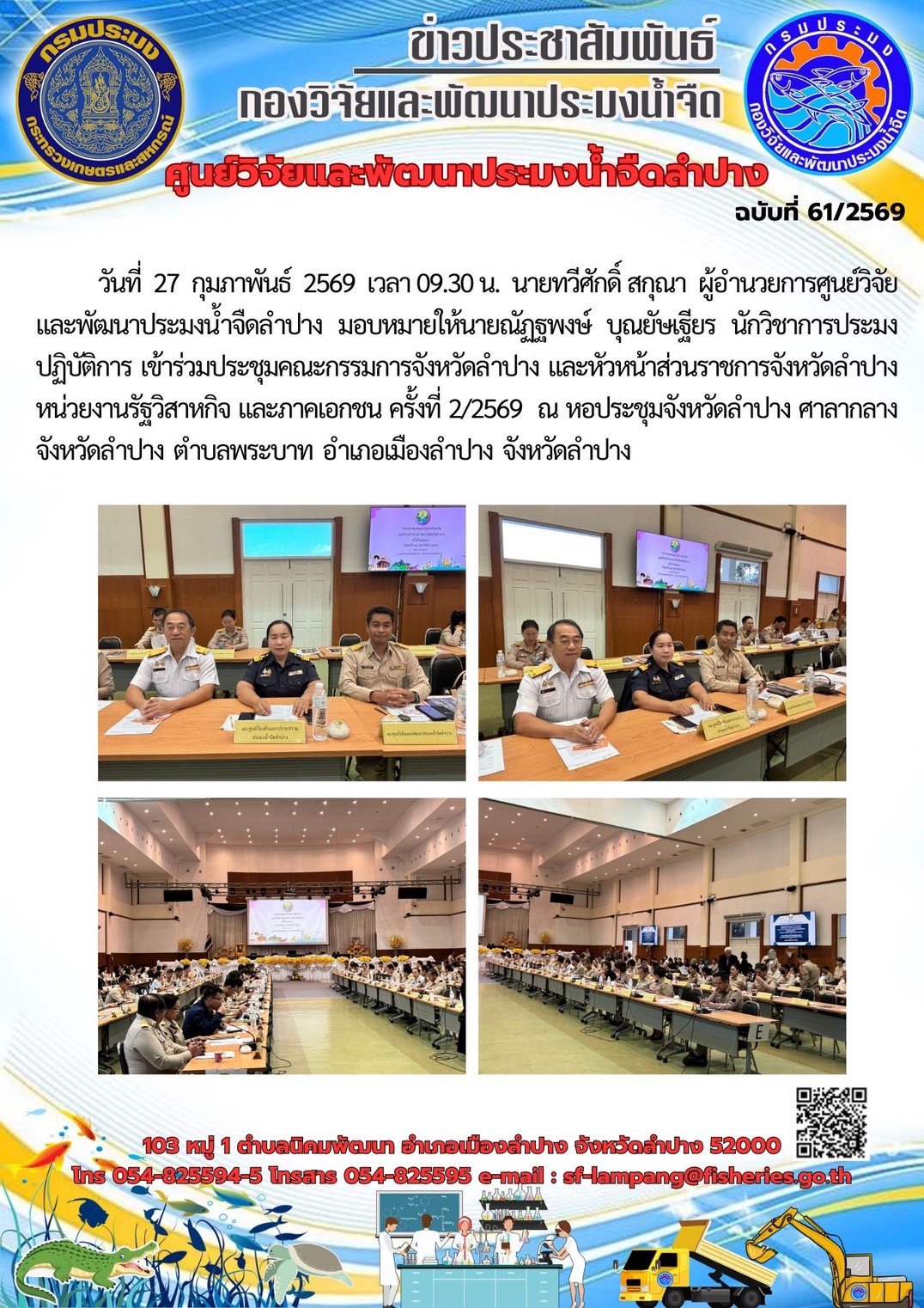 เข้าร่วมประชุมคณะกรรมการจังหวัดลำปาง และหัวหน้าส่วนราชการจังหวัดลำปาง หน่วยงานรัฐวิสาหกิจ และภาคเอกชน ครั้งที่ 2/2569