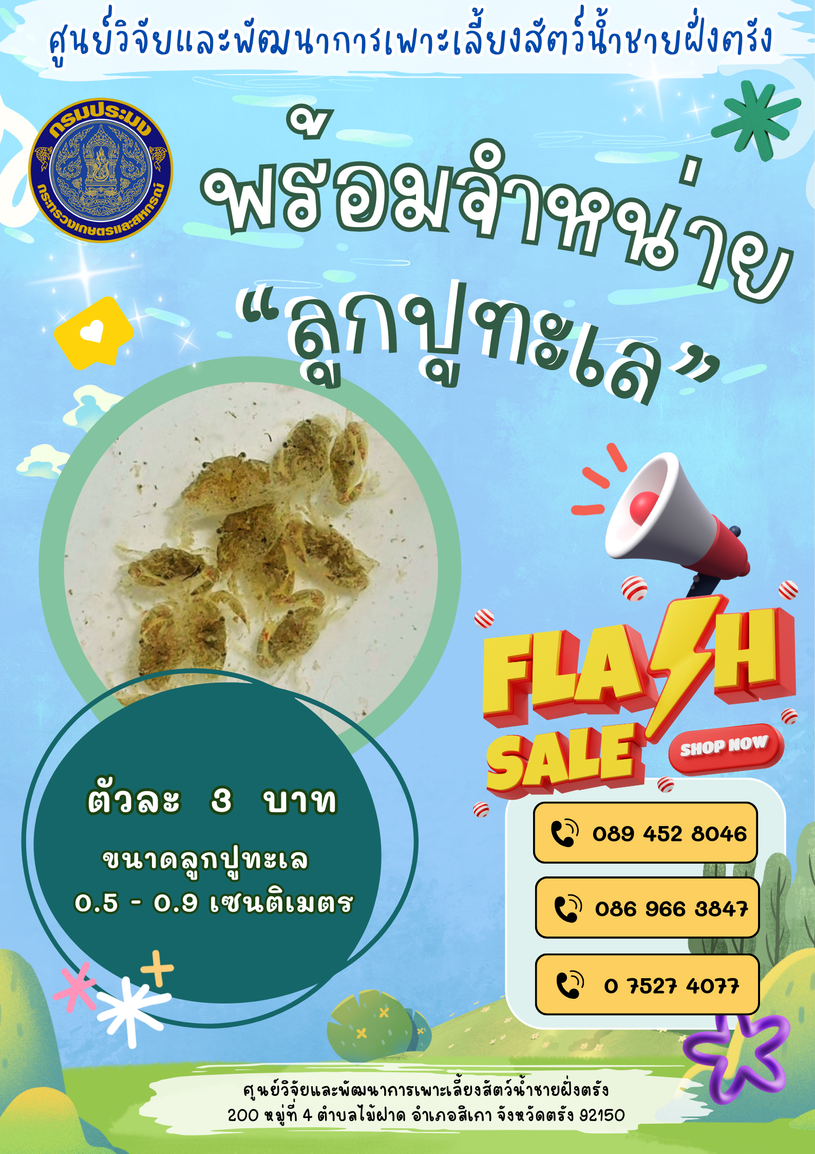 พร้อมจัดส่งลูกปูตั้งแต่วันที่ 13 กุมภาพันธ์ 2569 นี้เป็นต้นไป