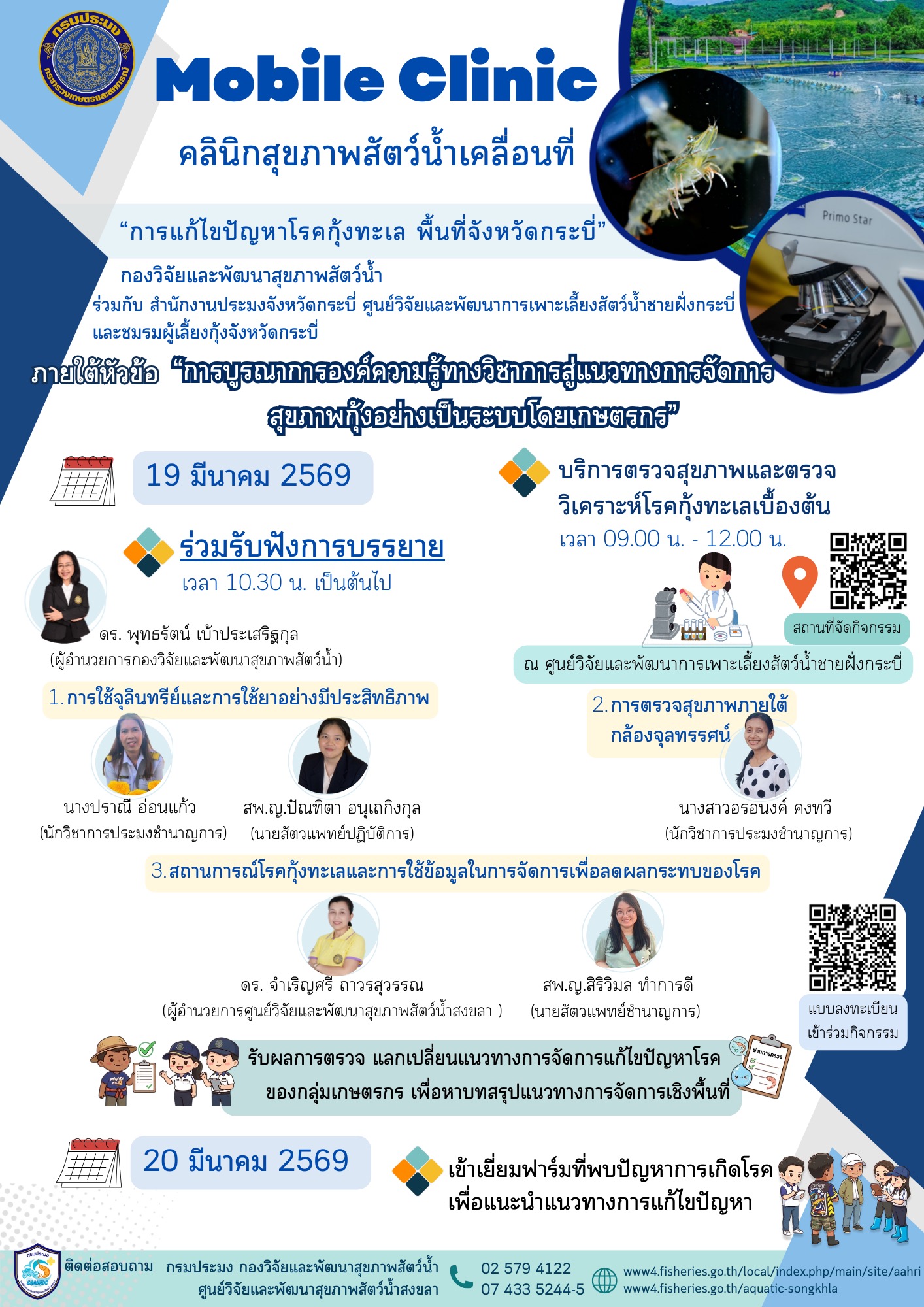 วันที่ 19 - 20 มีนาคม 2569 นี้ Mobile Clinic คลินิกสุขภาพสัตว์น้ำเคลื่อนที่พื้นที่จังหวัดกระบี่