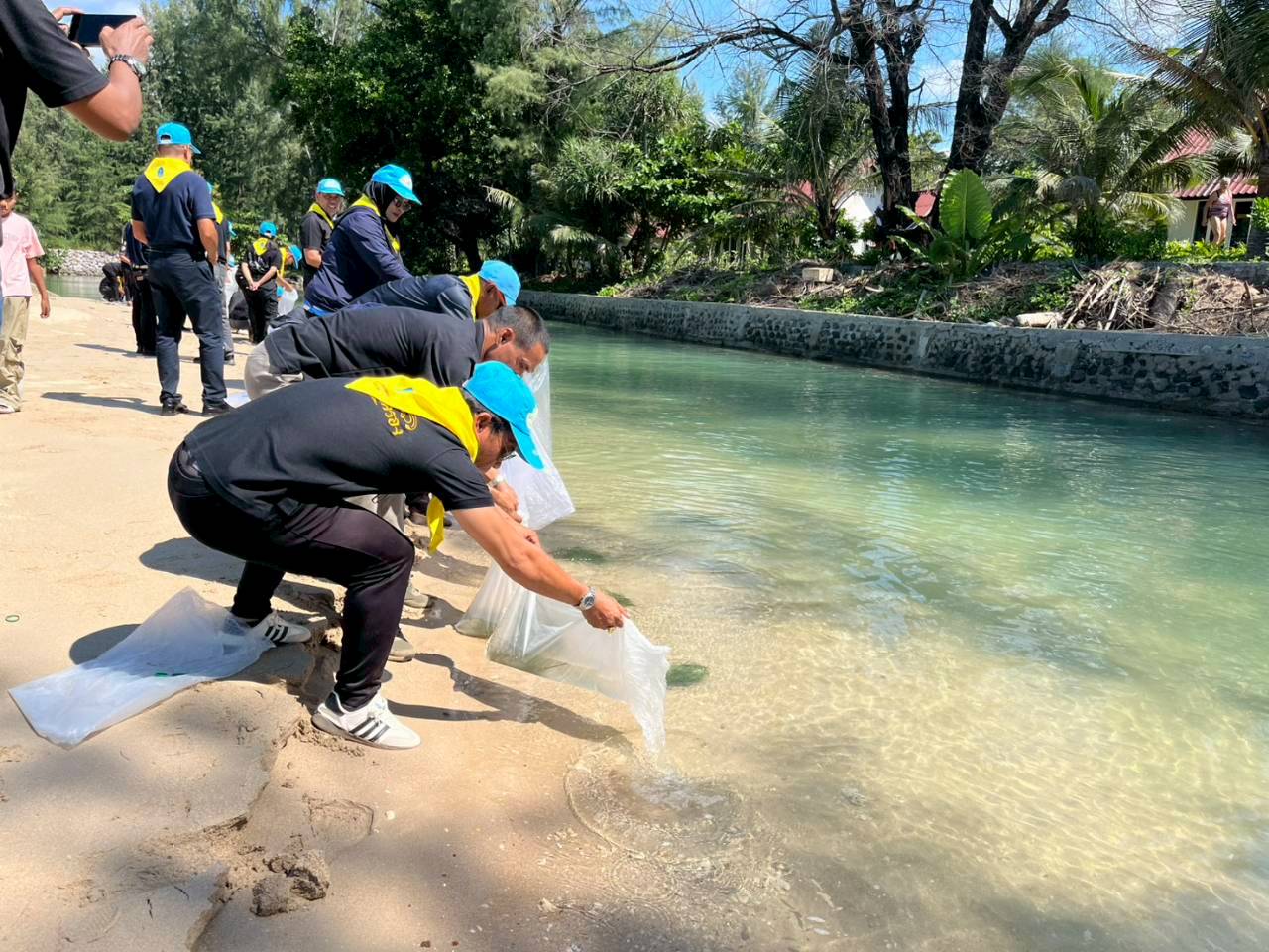 วันศุกร์ ที่ 5 ธันวาคม 2568 เวลา 11.00 น. นางสาวปริศนา คลิ้งสุขคล้าย ตำแหน่งผู้อำนวยการศูนย์ศึกษาการพัฒนาและอนุรักษ์พันธุ์ปู ป่าทุ่งทะเลอันเนื่องมาจากพระราชดำริ จังหวัดกระบี่ มอบหมายให้เจ้าหน้าที่เข้าร่วมกิจกรรมจิตอาสาพัฒนาวันพระบรมราชสมภพของพระบาทสมเด็จพระบรมชนกาธิเบศร มหาภูมิพลอดุลยเดชมหาราช บรมนาถบพิตร วันชาติไทย และวันพ่อแห่งชาติ พร้อมสนับสนุนลูกพันธุ์ปูม้า จำนวน 40,000 ตัว ในกิจกรรมปล่อยพันธุ์สัตว์น้ำ ณ สวนสาธารณะหาดพระแอะ ม.2 ต.ศาลาด่าน อ.เกาะลันตา จ.กระบี่
