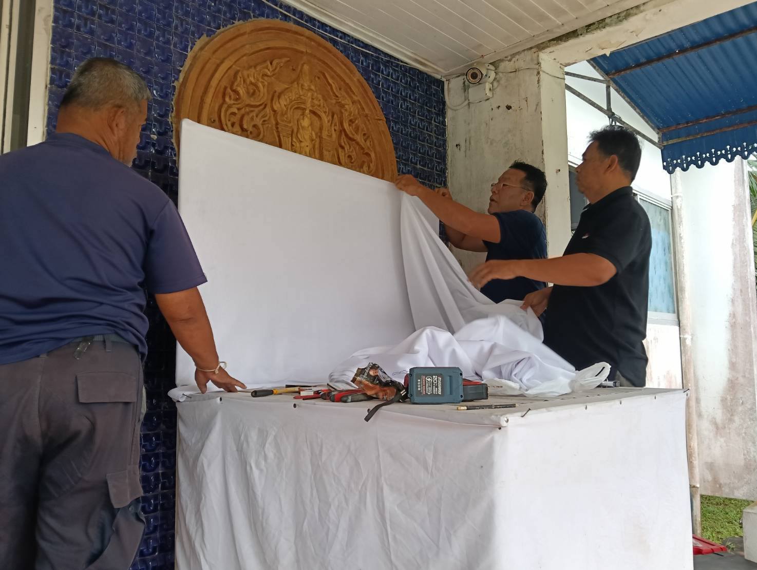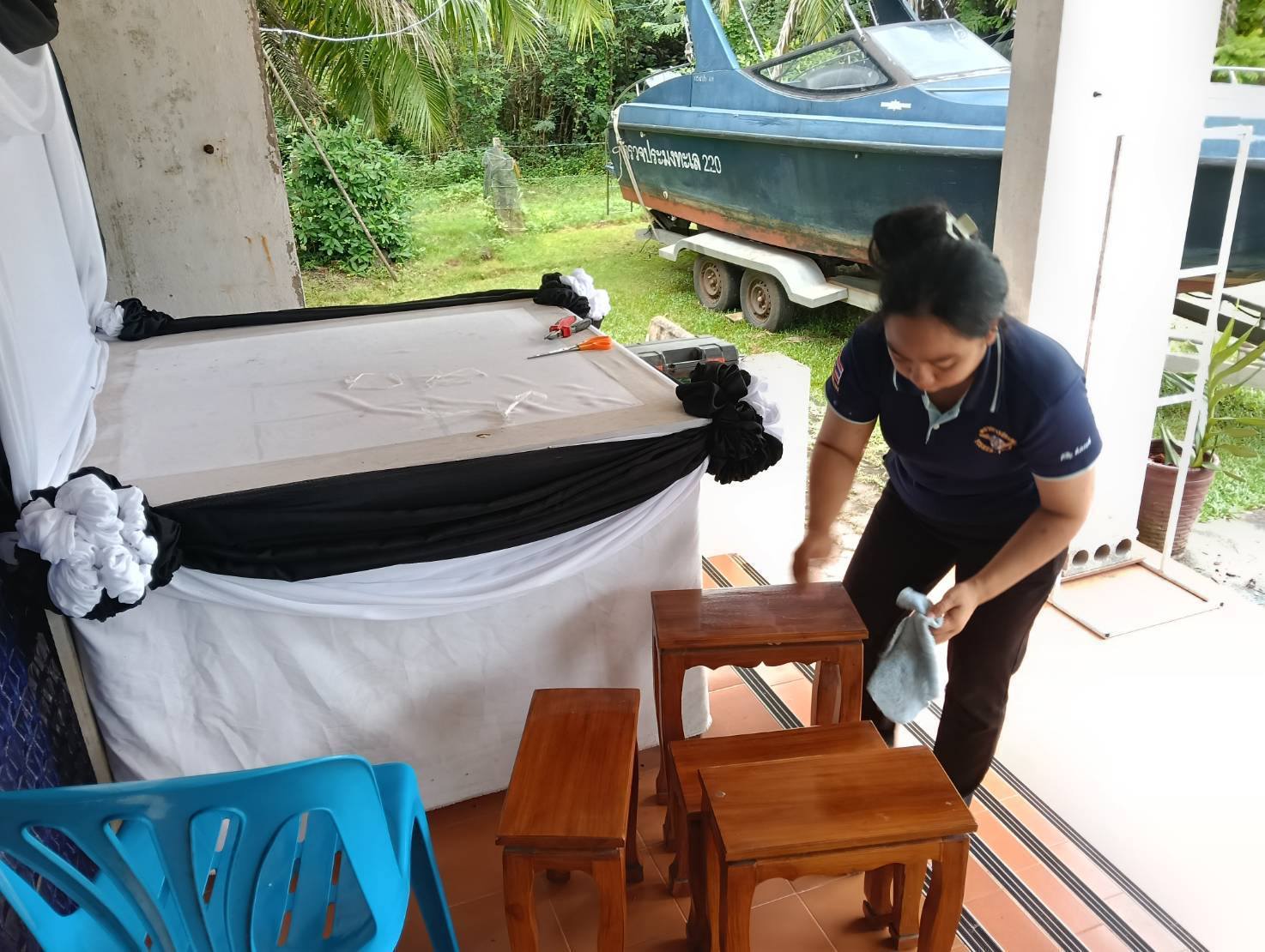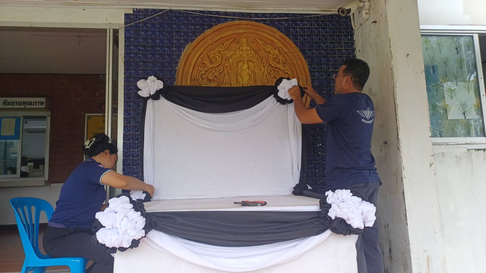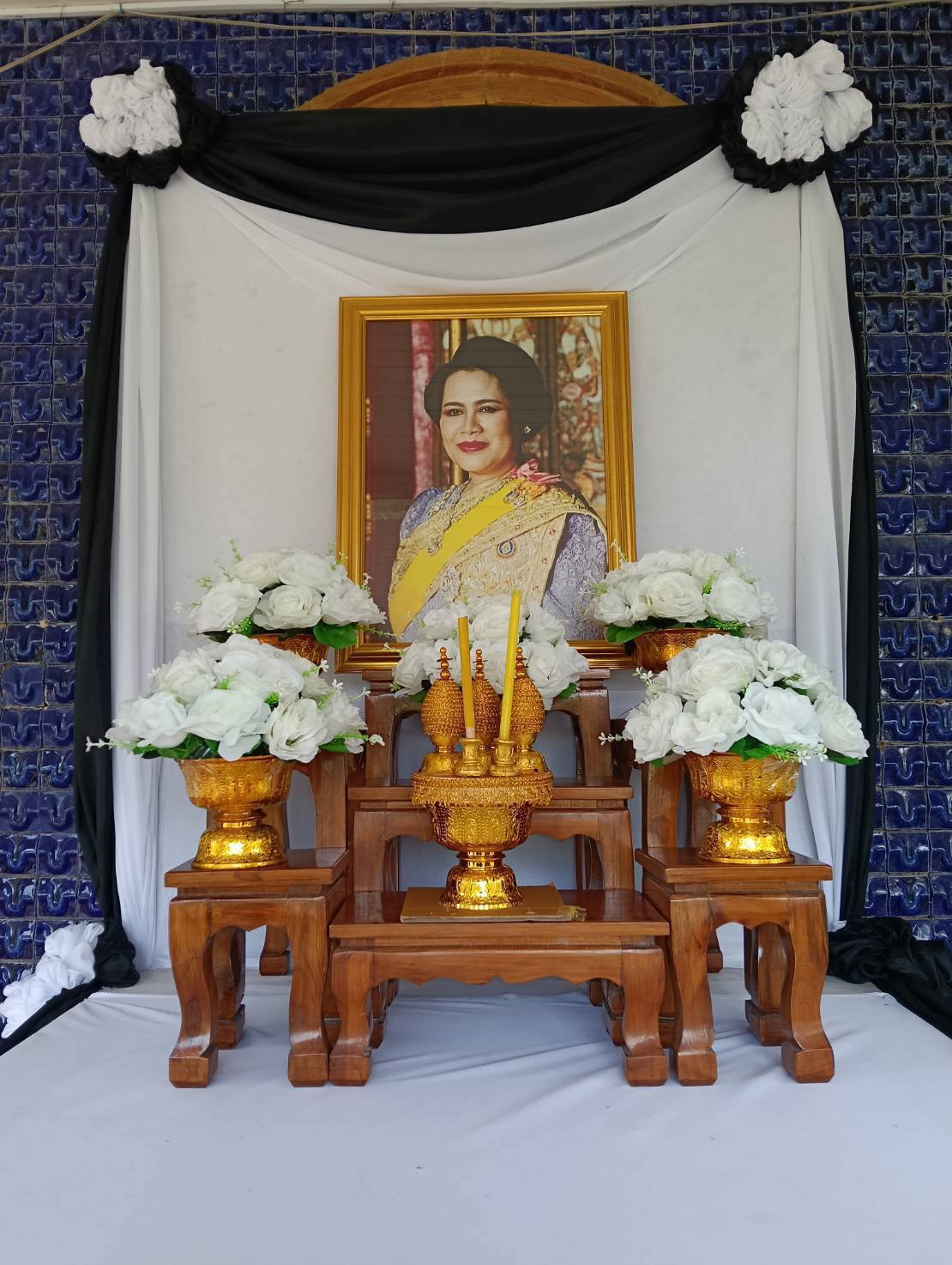 จัดโต๊ะหมู่ประดิษฐานพระฉายาลักษณ์ สมเด็จพระนางเจ้าเจ้าสิริกิติ์ พระบรมราชินีนาถ พระบรมราชชนนีพันปีหลวง สวรรคาลัย