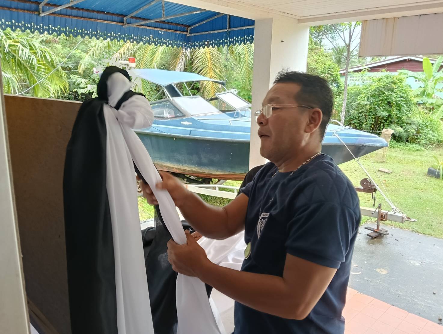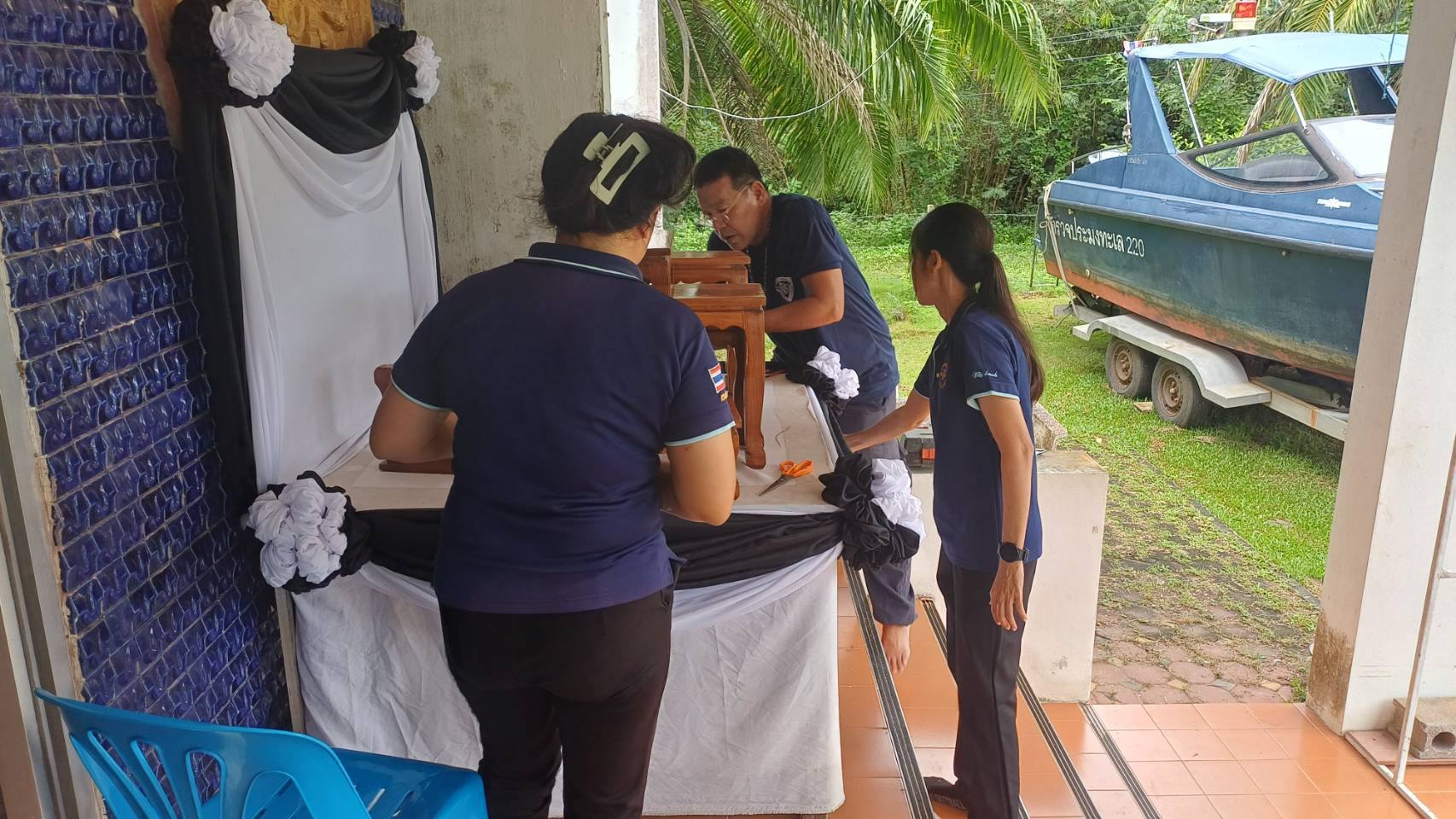 วันที่ 3 พฤศจิกายน 2568 หน่วยป้องกันและปราบปรามประมงทะเลหลังสวน (ชุมพร) ศูนย์ป้องกันและปราบปรามประมงทะเลชุมพร กองตรวจการประมง กรมประมง โดยนายนุรัตน์ ขาวสอาด หัวหน้า นปท.หลังสวน (ชุมพร) มอบหมายให้ เจ้าหน้าที่หน่วยฯ จัดโต๊ะหมู่ประดิษฐานพระฉายาลักษณ์ และประดับผ้า บริเวณสำนักงาน อันเกี่ยวเนื่องกับงานพระบรมศพสมเด็จพระนางเจ้าสิริกิติ์ พระบรมราชินีนาถ พระบรมราชชนนีพันปีหลวง