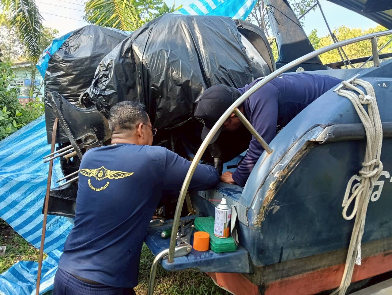 วันที่ 17 ธันวาคม 2568 หน่วยป้องกันและปราบปรามประมงทะเลหลังสวน (ชุมพร) ศูนย์ป้องกันและปราบปรามประมงทะเลชุมพร กองตรวจการประมง กรมประมง โดยนายนุรัตน์ ขาวสอาด หัวหน้า นปท.หลังสวน (ชุมพร) มอบหมายให้ เจ้าหน้าที่และช่างเครื่องเรือประจำหน่วยฯร่วมกับ ช่างเครื่องเรือประจำกองตรวจการประมง ดำเนินการซ่อมเปลี่ยนเครื่องยนต์ระบบเกียร์ ระบบมอเตอร์ยกหางเรือตรวจประมงทะเล 220 เพื่อเตรียมความพร้อมในการปฏิบัติงานของเจ้าหน้าที่ต่อไป