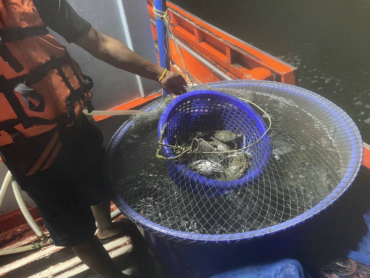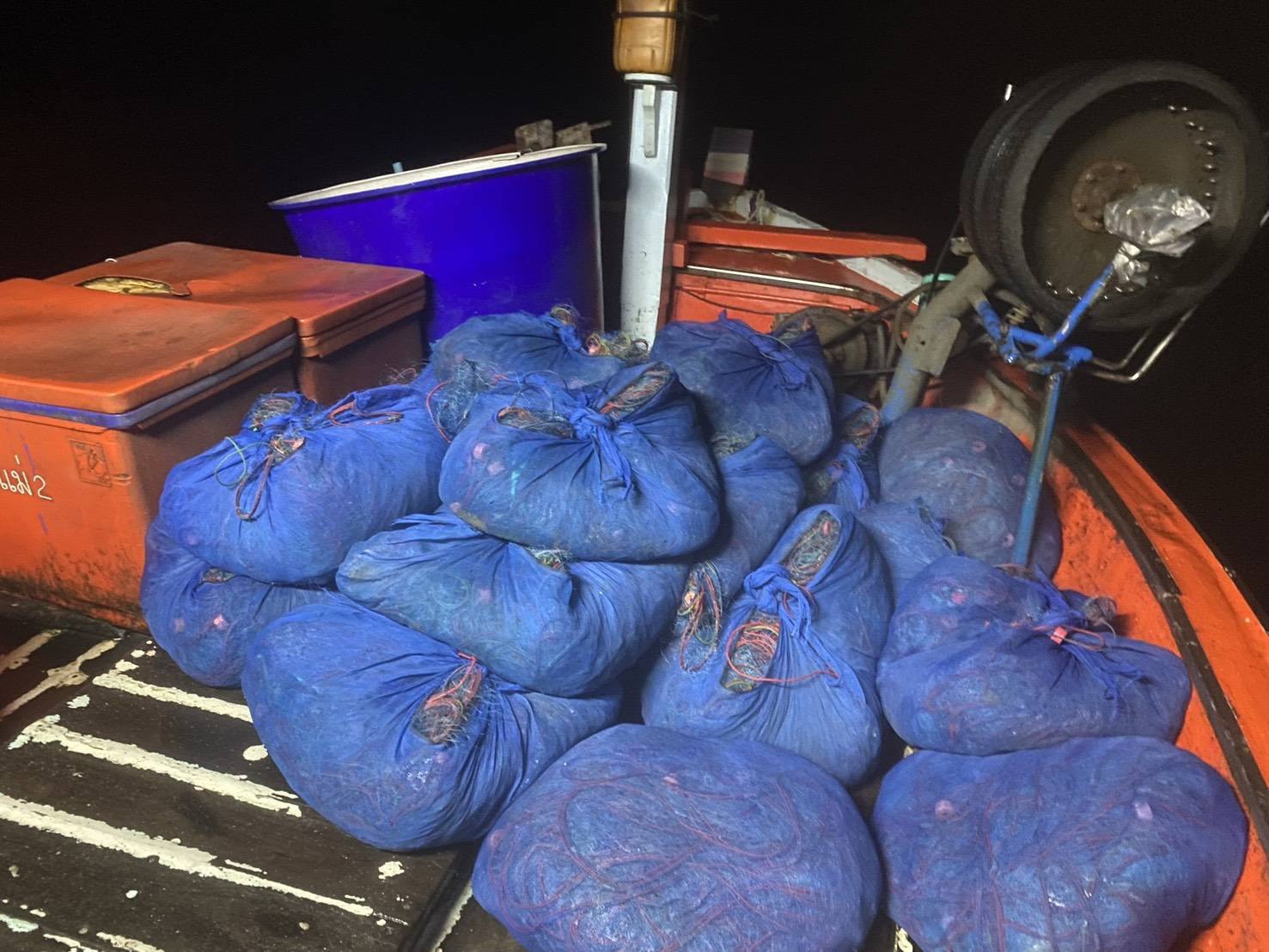 ผลการปฏิบัติงาน ได้ตรวจสอบเรืออวนติดตา จำนวน 2 ลำ และ อวนลากเดี่ยวคานถ่าง จำนวน 1 ลำ รวมแรงงานไทย 9 นาย แรงงานต่างด้าวสัญชาติเมียนมาร์ 11นาย รวมแรงงานทั้งหมด 20 นาย