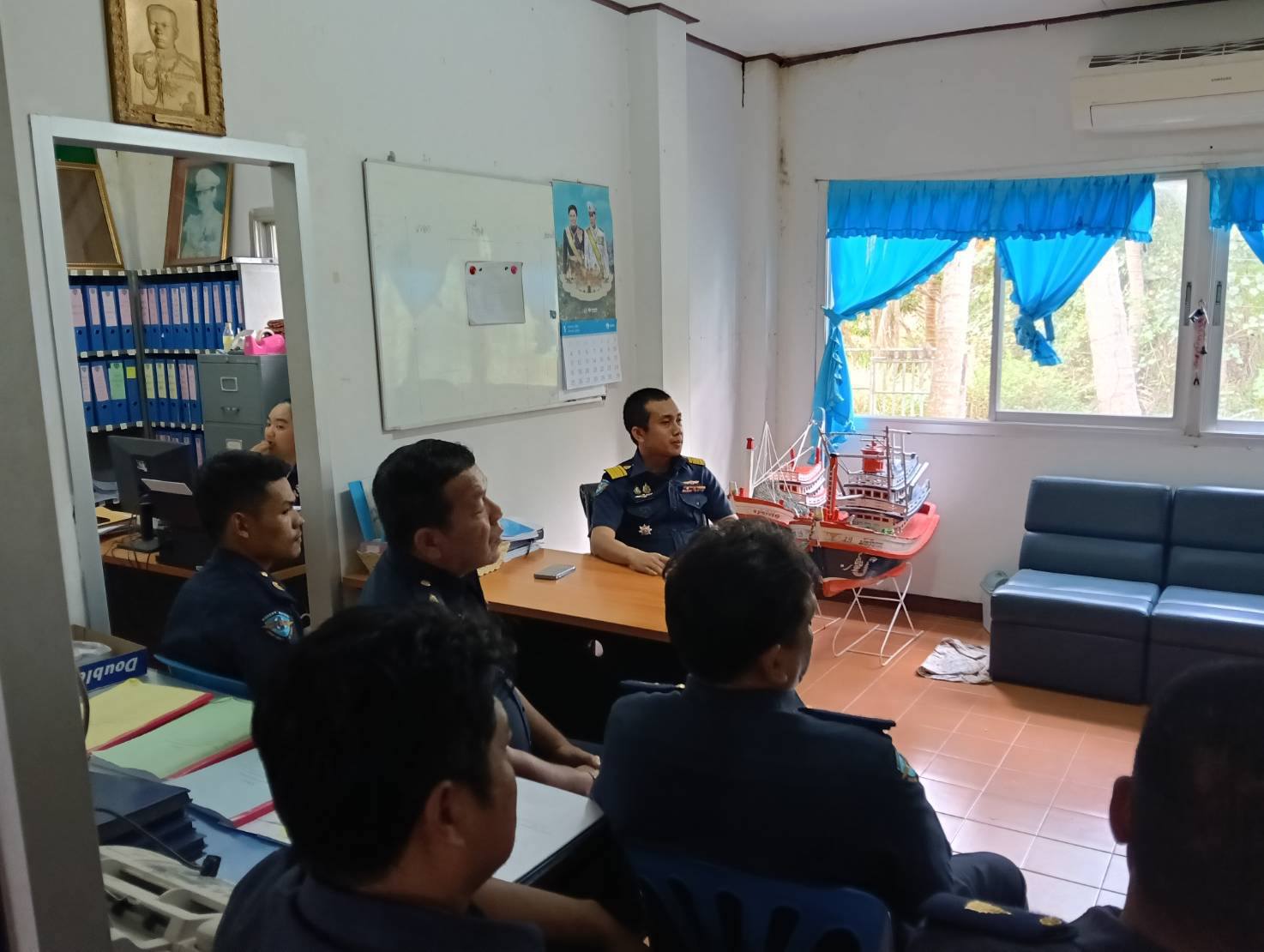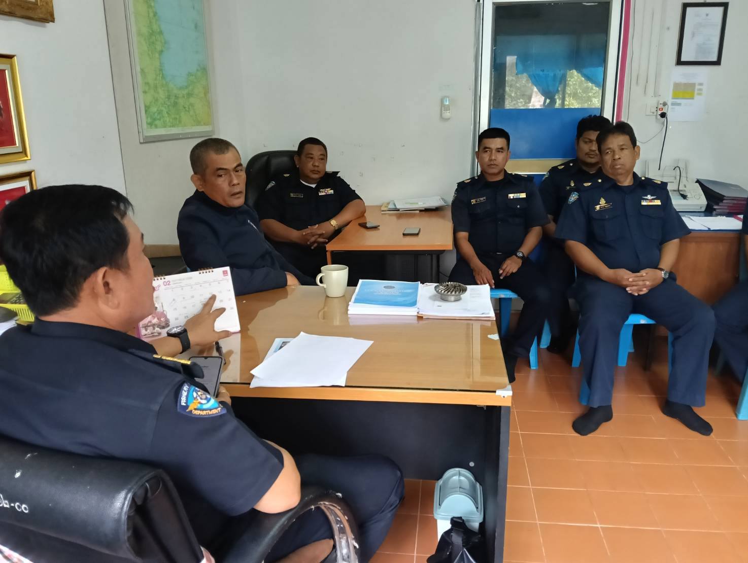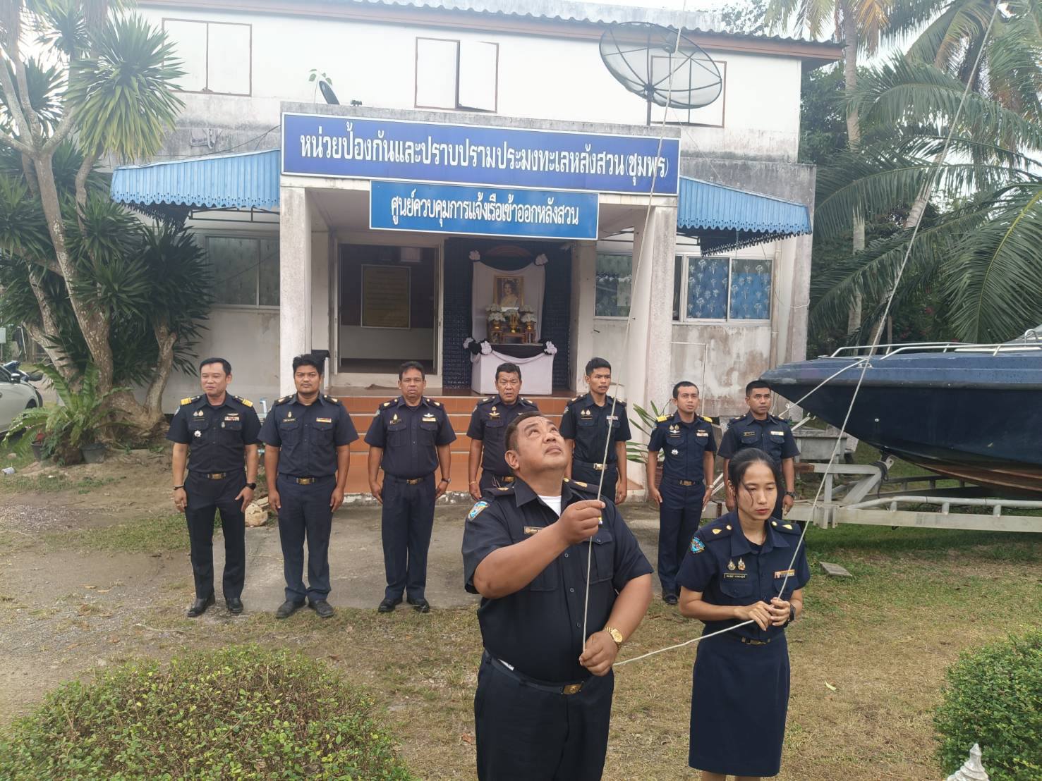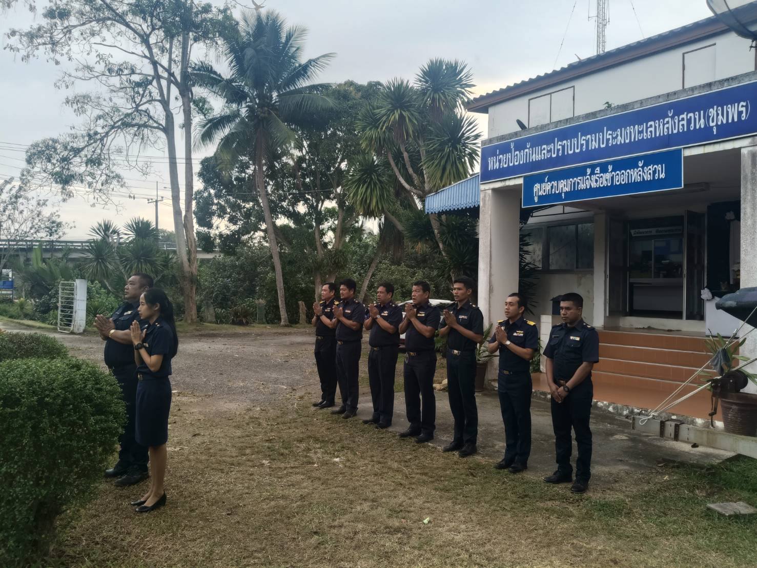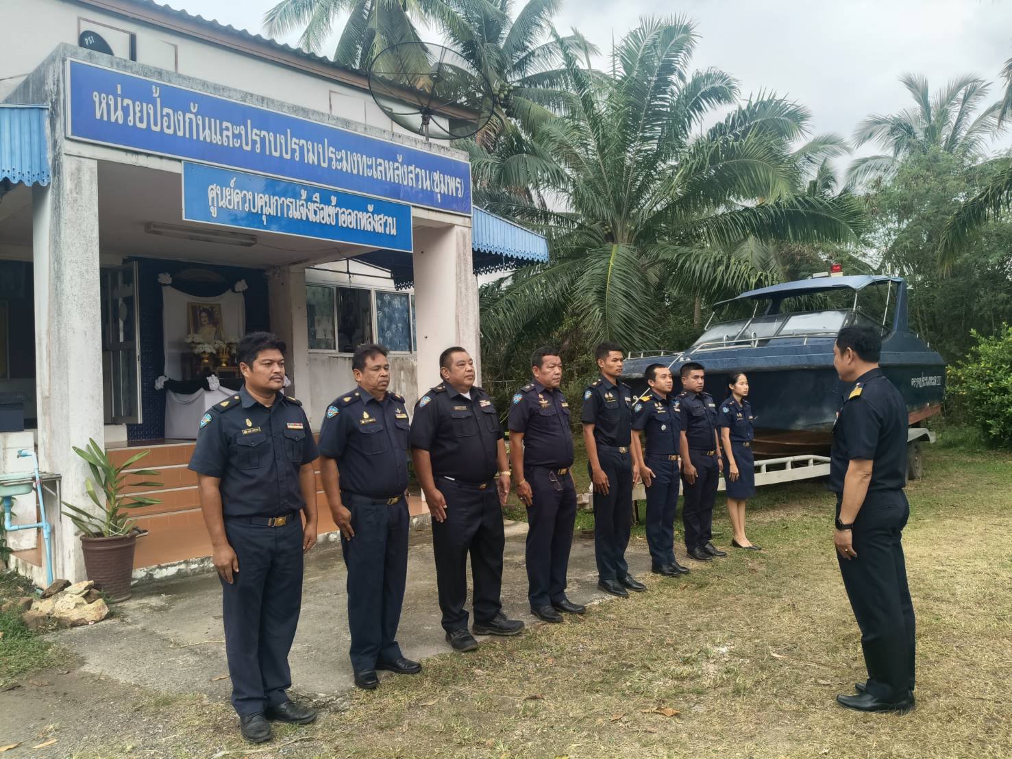 วันที่ 2 กุมภาพันธ์ 2569 หน่วยป้องกันและปราบปรามประมงทะเลหลังสวน (ชุมพร) ศูนย์ป้องกันและปราบปรามประมงทะเลชุมพร กองตรวจการประมง กรมประมง โดยนายนุรัตน์ ขาวสอาด หัวหน้าหน่วยฯ หลังสวน (ชุมพร) พร้อมด้วยเจ้าหน้าที่ ร่วมกิจกรรมเคารพธงชาติร้องเพลงชาติไทย สวดมนต์ และประชุมชี้แจงแผนการปฏิบัติงาน ประจำเดือน กุมภาพันธ์ ปี 2569