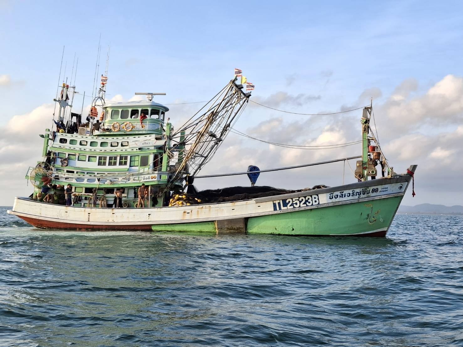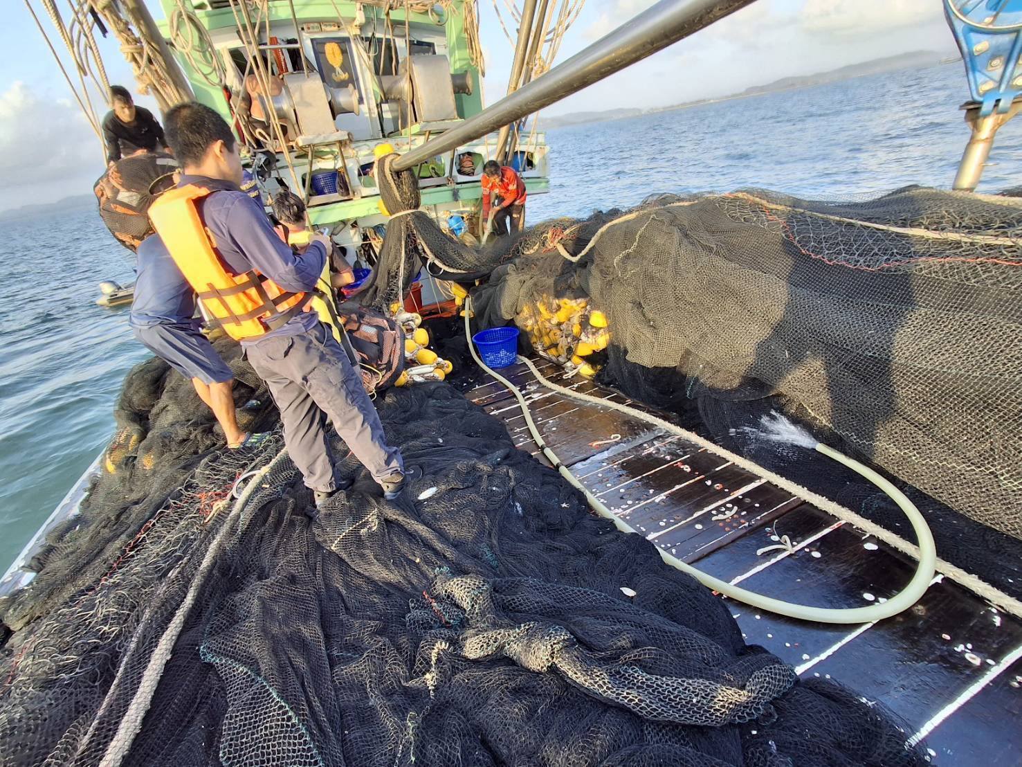 ผลการปฏิบัติงาน ได้ตรวจสอบเรืออวนติดตา จำนวน 2 ลำ และ เรืออวนล้อมจับ (อวนดำ) จำนวน 1 ลำ รวมแรงงานไทย 10 นาย แรงงานต่างด้าวสัญชาติเมียนมาร์ 35 นาย รวมแรงงานทั้งหมด 45 นาย
