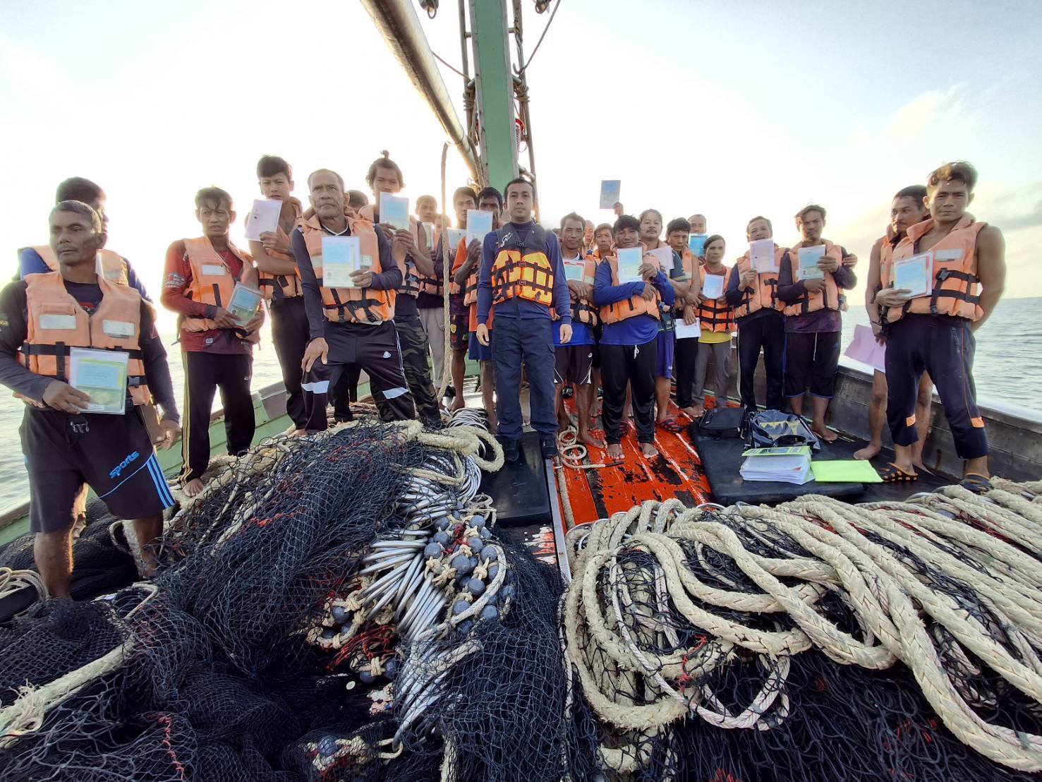 จากการตรวจสอบเอกสารประจำเรือ คนประจำเรือใบอนุญาตฯ และเครื่องมือทำการประมง ถูกต้องครบถ้วน ไม่พบผู้กระทำความผิดตามกฎหมาย พร้อมทั้งประชาสัมพันธ์ เกี่ยวกับ พระราชกำหนดการประมง พ.ศ.2558 และที่แก้ไขเพิ่มเติม
