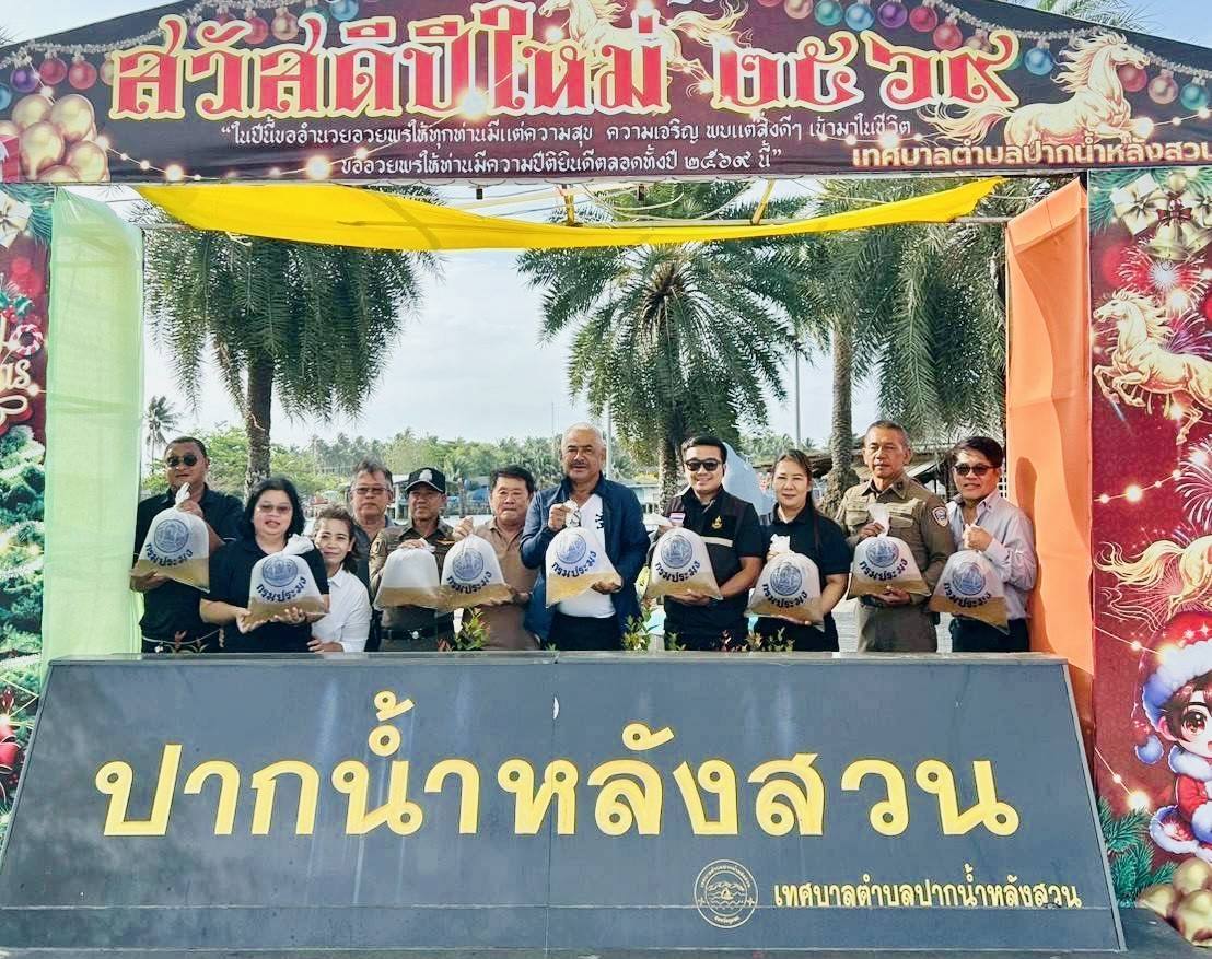 วันที่ 19 กุมภาพันธ์ 2569 หน่วยป้องกันและปราบปรามประมงทะเลหลังสวน (ชุมพร) ศูนย์ป้องกันและปราบปรามประมงทะเลชุมพร กองตรวจการประมง กรมประมง โดยนายนุรัตน์ ขาวสอาด หัวหน้าหน่วยฯ หลังสวน (ชุมพร) มอบหมายให้เจ้าหน้าที่หน่วยฯ ร่วมปล่อยพันธุ์สัตว์น้ำกุ้งกุลาดำ เพื่อเป็นการร่วมรณรงค์ และอนุรักษ์ทรัพยากรสัตว์น้ำ เพื่อไว้ใช้อย่างยั่งยืน ณ บริเวณท่าน้ำลานปลาโลมา ต.ปากน้ำ อ.หลังสวน จ.ชุมพร