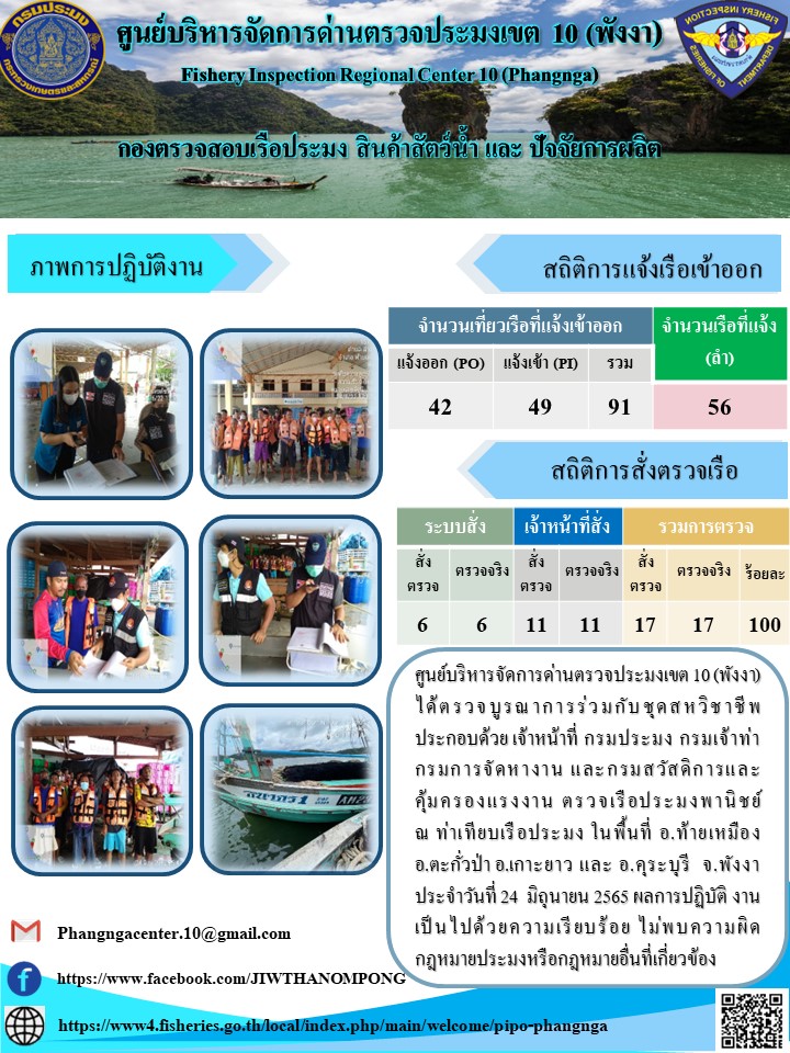 ข่าวประชาสัมพันธ์กิจกรรมการตรวจเรือประมงพาณิชย์แจ้งเข้า - ออก วันที่ 24 มิถุนายน 2565