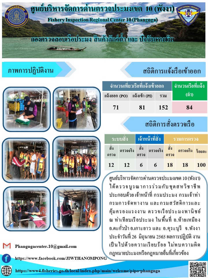 ข่าวประชาสัมพันธ์กิจกรรมการตรวจเรือประมงพาณิชย์แจ้งเข้า - ออก วันที่ 26 มิถุนายน 2565