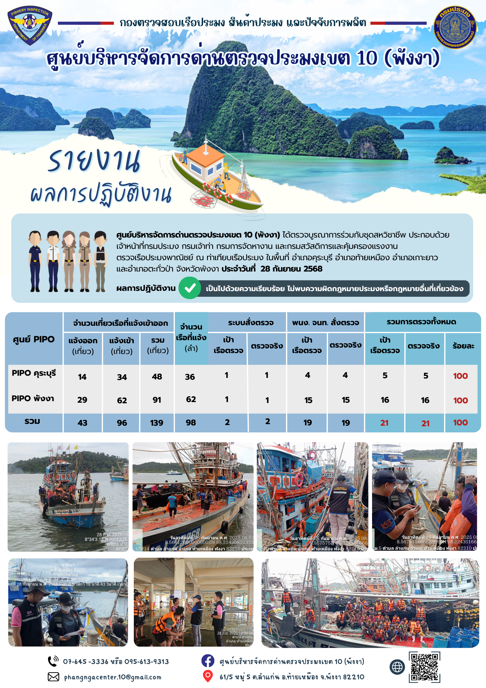 ข่าวประชาสัมพันธ์กิจกรรมการตรวจเรือประมงพาณิชย์แจ้งเข้า - ออก วันที่ 28 กันยายน 2568