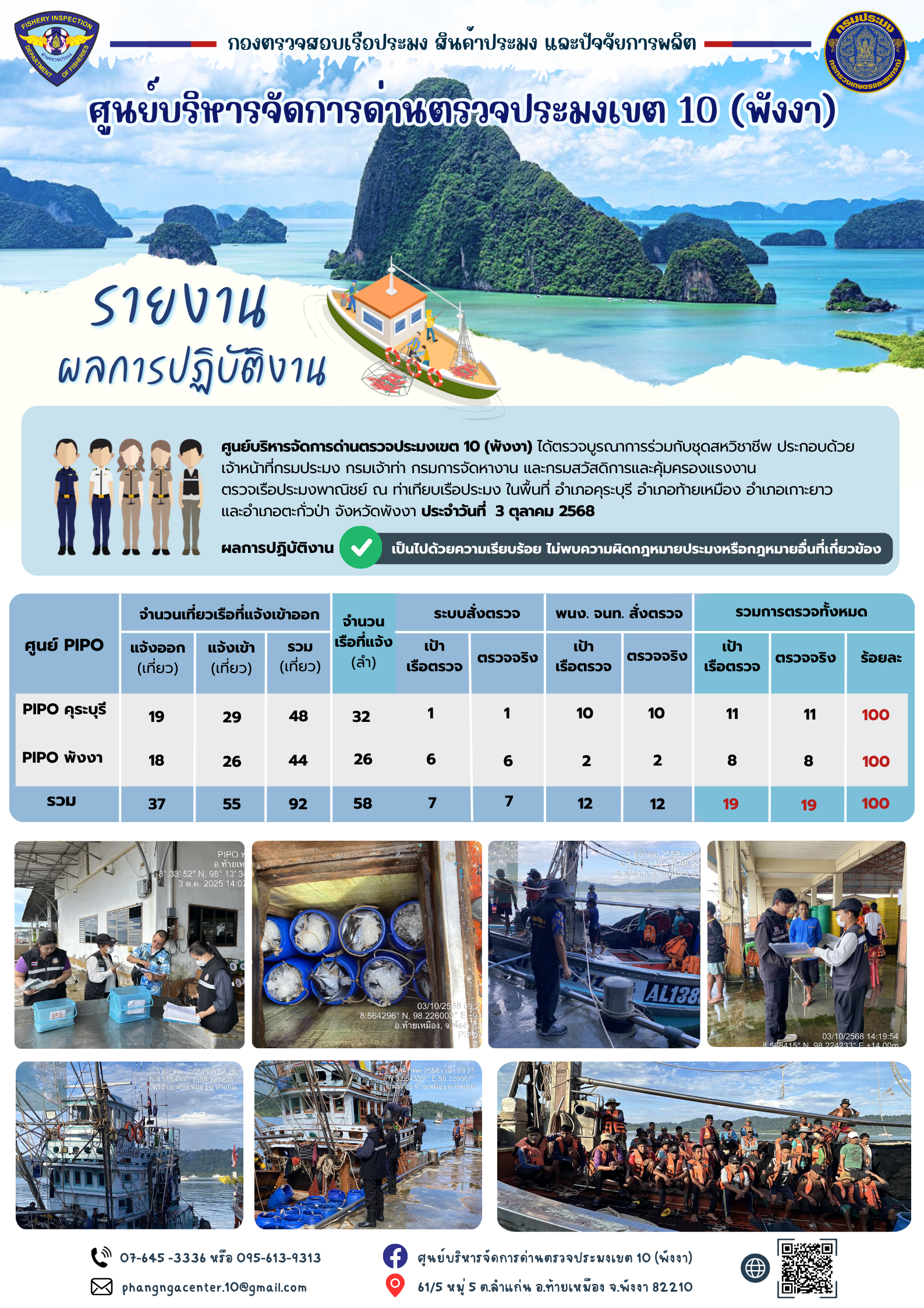 ข่าวประชาสัมพันธ์กิจกรรมการตรวจเรือประมงพาณิชย์แจ้งเข้า - ออก วันที่ 3 ตุลาคม 2568