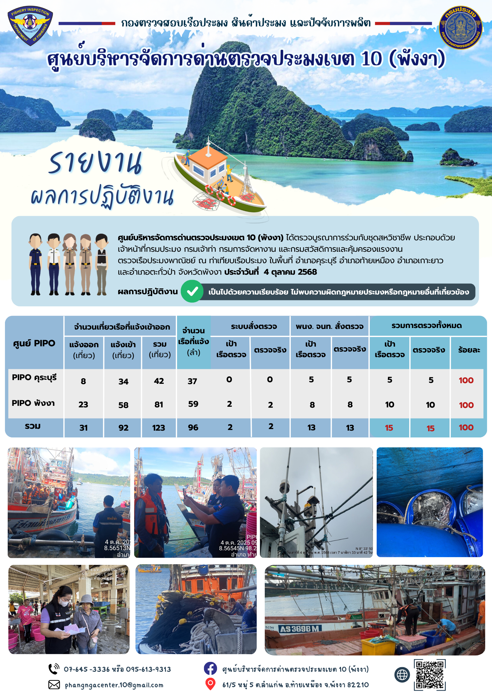 ข่าวประชาสัมพันธ์กิจกรรมการตรวจเรือประมงพาณิชย์แจ้งเข้า - ออก วันที่ 4 ตุลาคม 2568