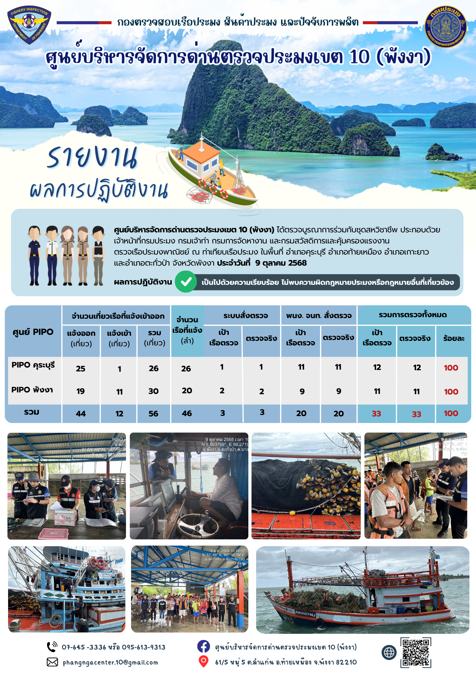 ข่าวประชาสัมพันธ์กิจกรรมการตรวจเรือประมงพาณิชย์แจ้งเข้า - ออก วันที่ 9 ตุลาคม 2568