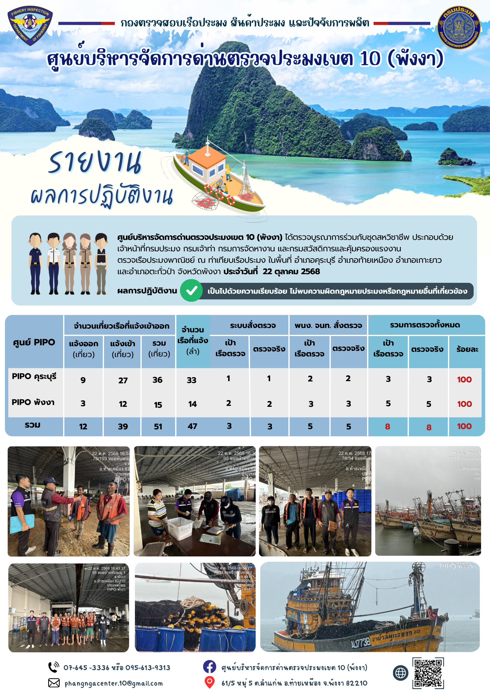 ข่าวประชาสัมพันธ์กิจกรรมการตรวจเรือประมงพาณิชย์แจ้งเข้า - ออก วันที่ 22 ตุลาคม 2568