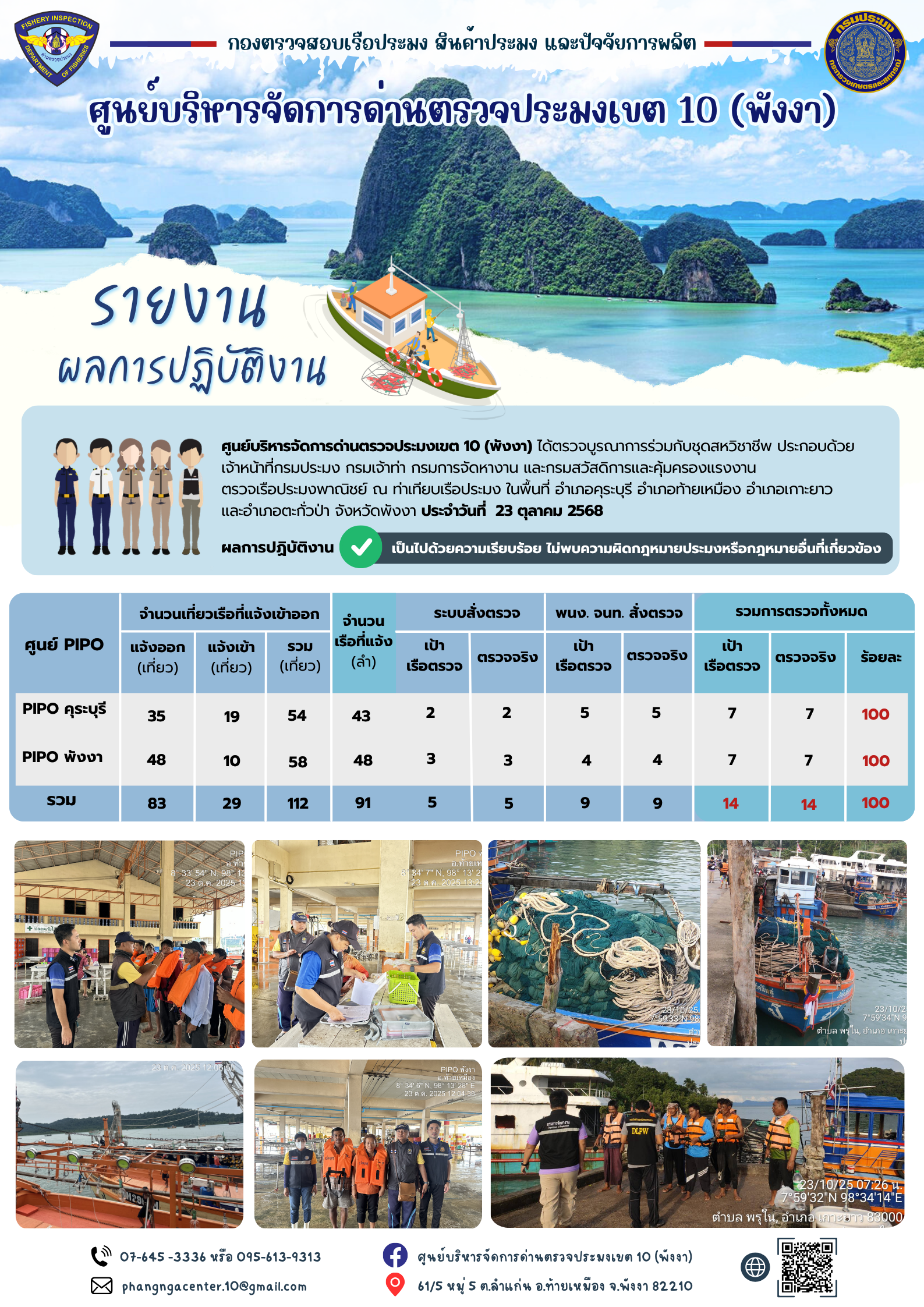 ข่าวประชาสัมพันธ์กิจกรรมการตรวจเรือประมงพาณิชย์แจ้งเข้า - ออก วันที่ 23 ตุลาคม 2568