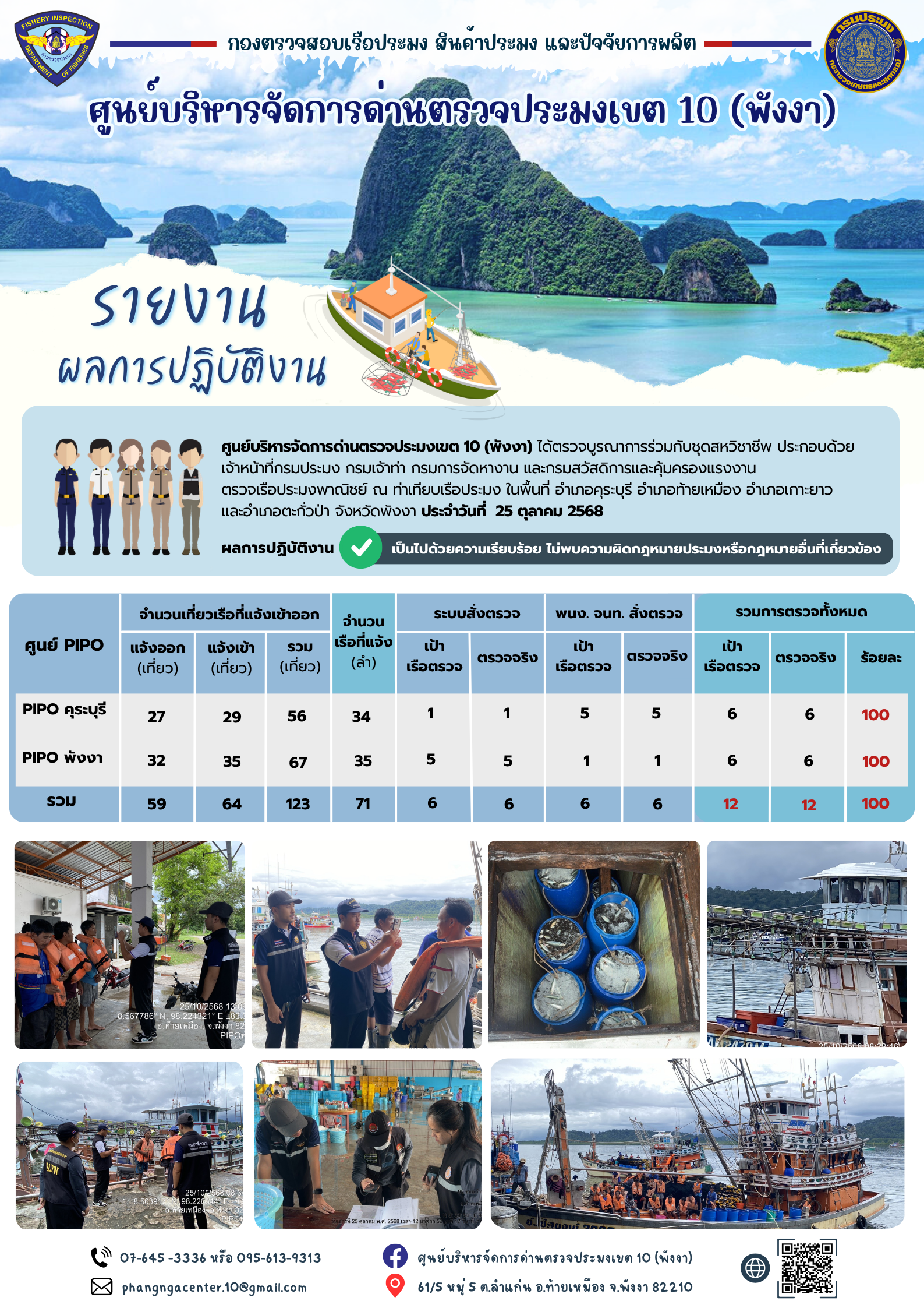 ข่าวประชาสัมพันธ์กิจกรรมการตรวจเรือประมงพาณิชย์แจ้งเข้า - ออก วันที่ 25 ตุลาคม 2568