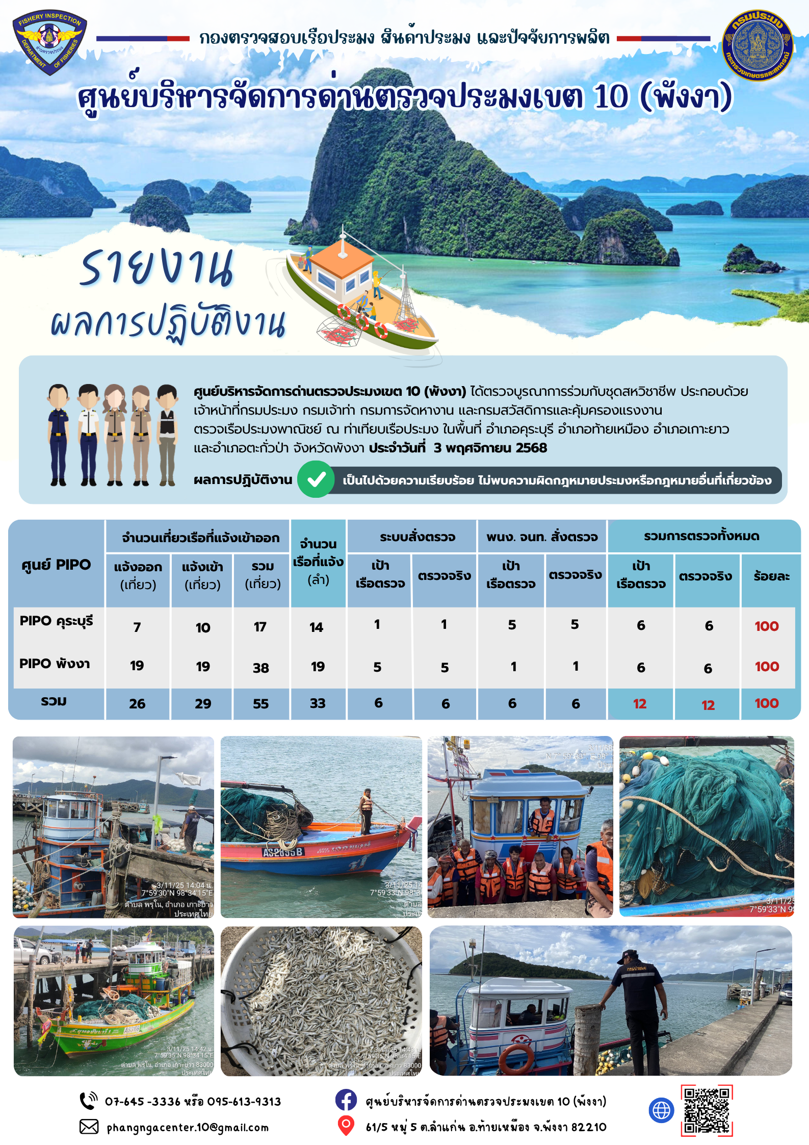 ข่าวประชาสัมพันธ์กิจกรรมการตรวจเรือประมงพาณิชย์แจ้งเข้า - ออก วันที่ 3 พฤศจิกายน 2568