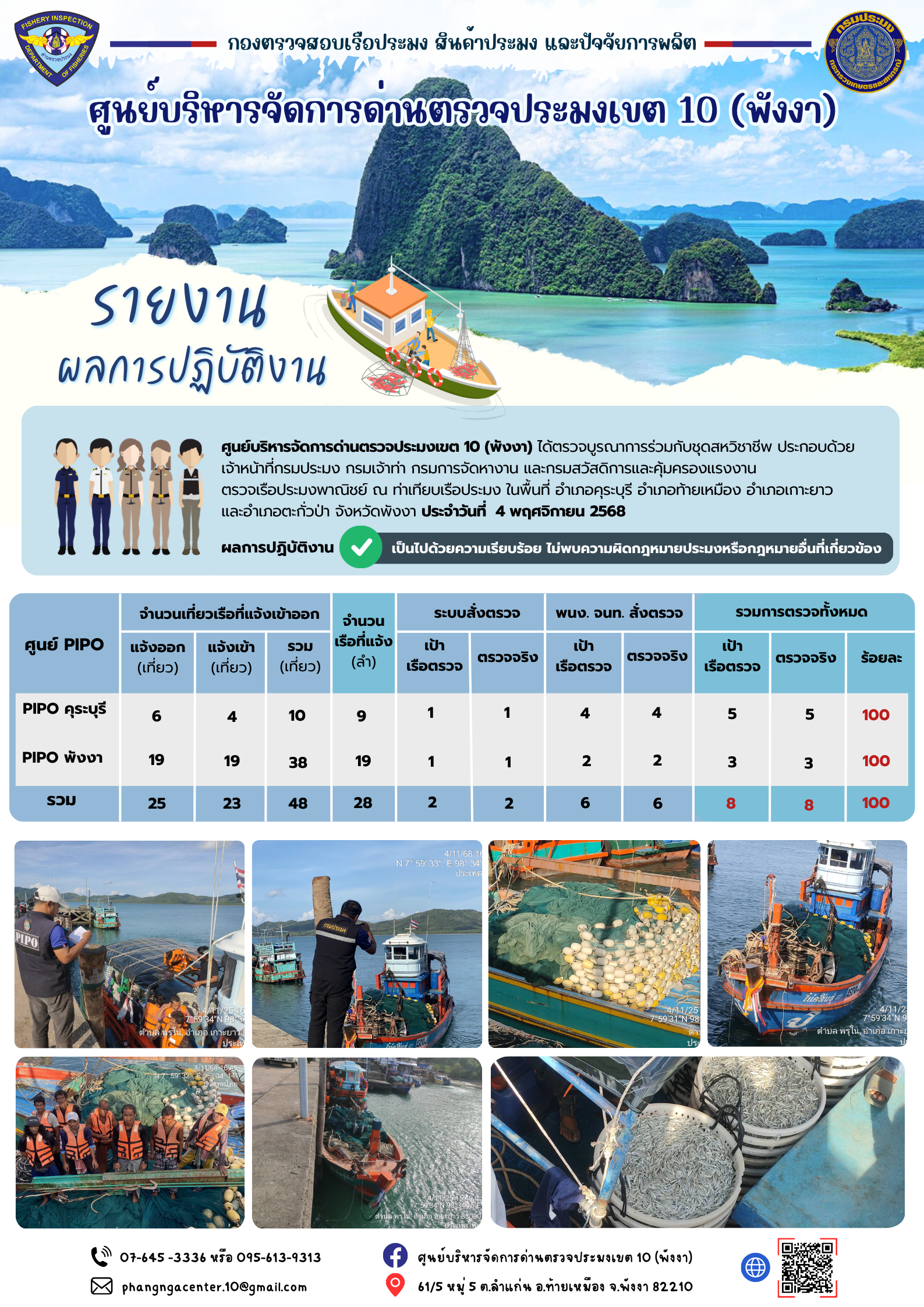 ข่าวประชาสัมพันธ์กิจกรรมการตรวจเรือประมงพาณิชย์แจ้งเข้า - ออก วันที่ 4 พฤศจิกายน 2568