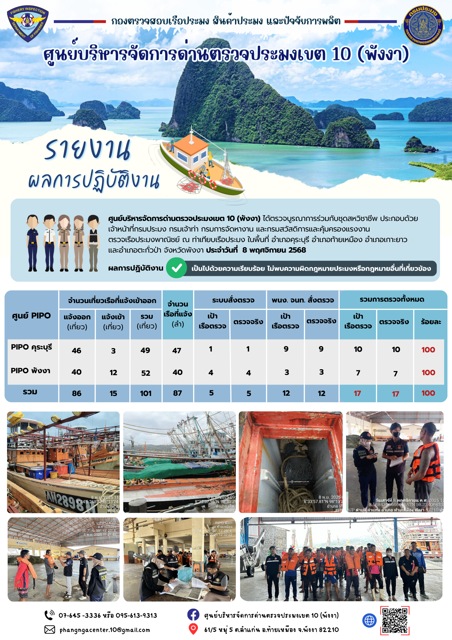 ข่าวประชาสัมพันธ์กิจกรรมการตรวจเรือประมงพาณิชย์แจ้งเข้า - ออก วันที่ 8 พฤศจิกายน 2568