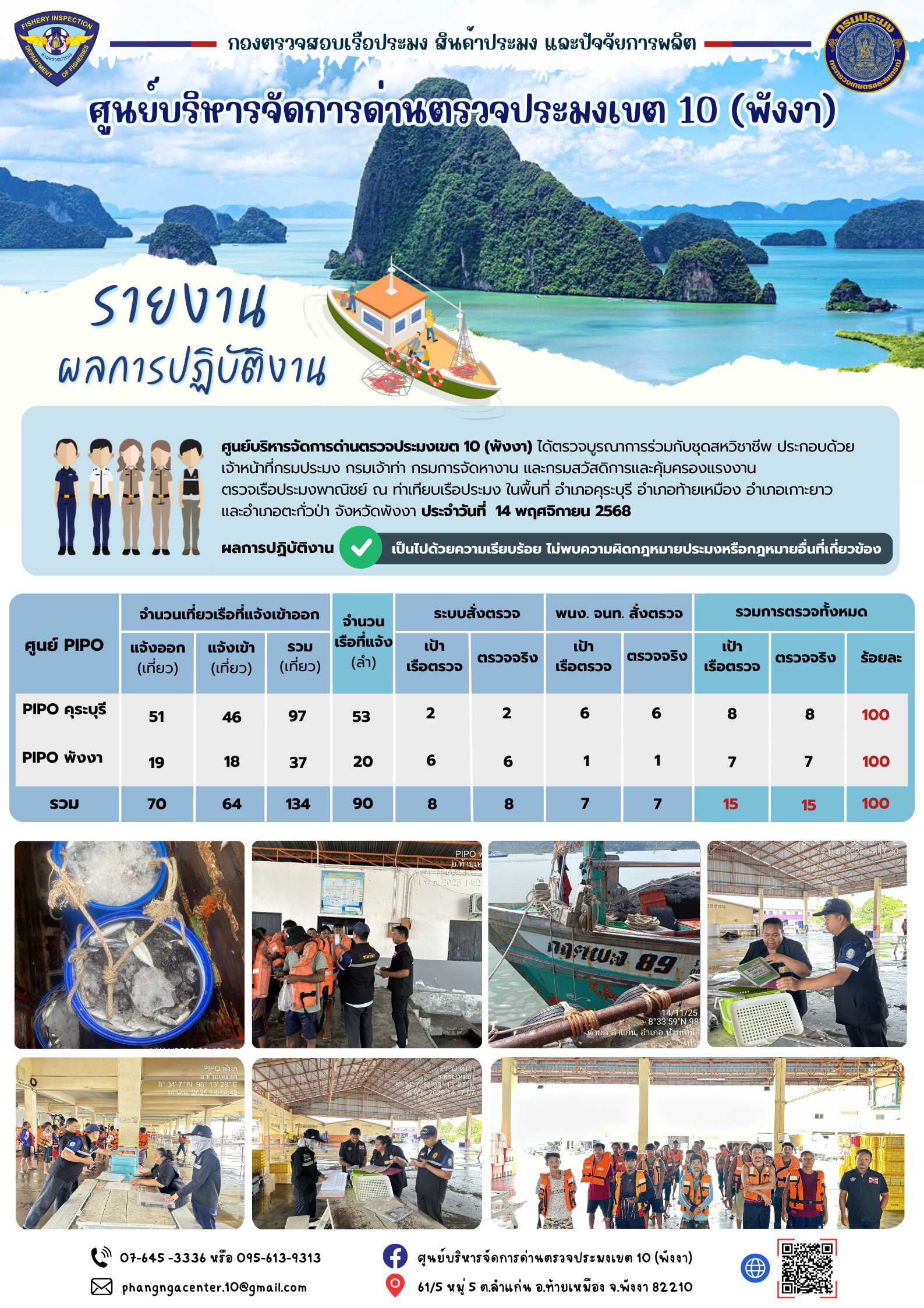 ข่าวประชาสัมพันธ์กิจกรรมการตรวจเรือประมงพาณิชย์แจ้งเข้า - ออก วันที่ 14 พฤศจิกายน 2568