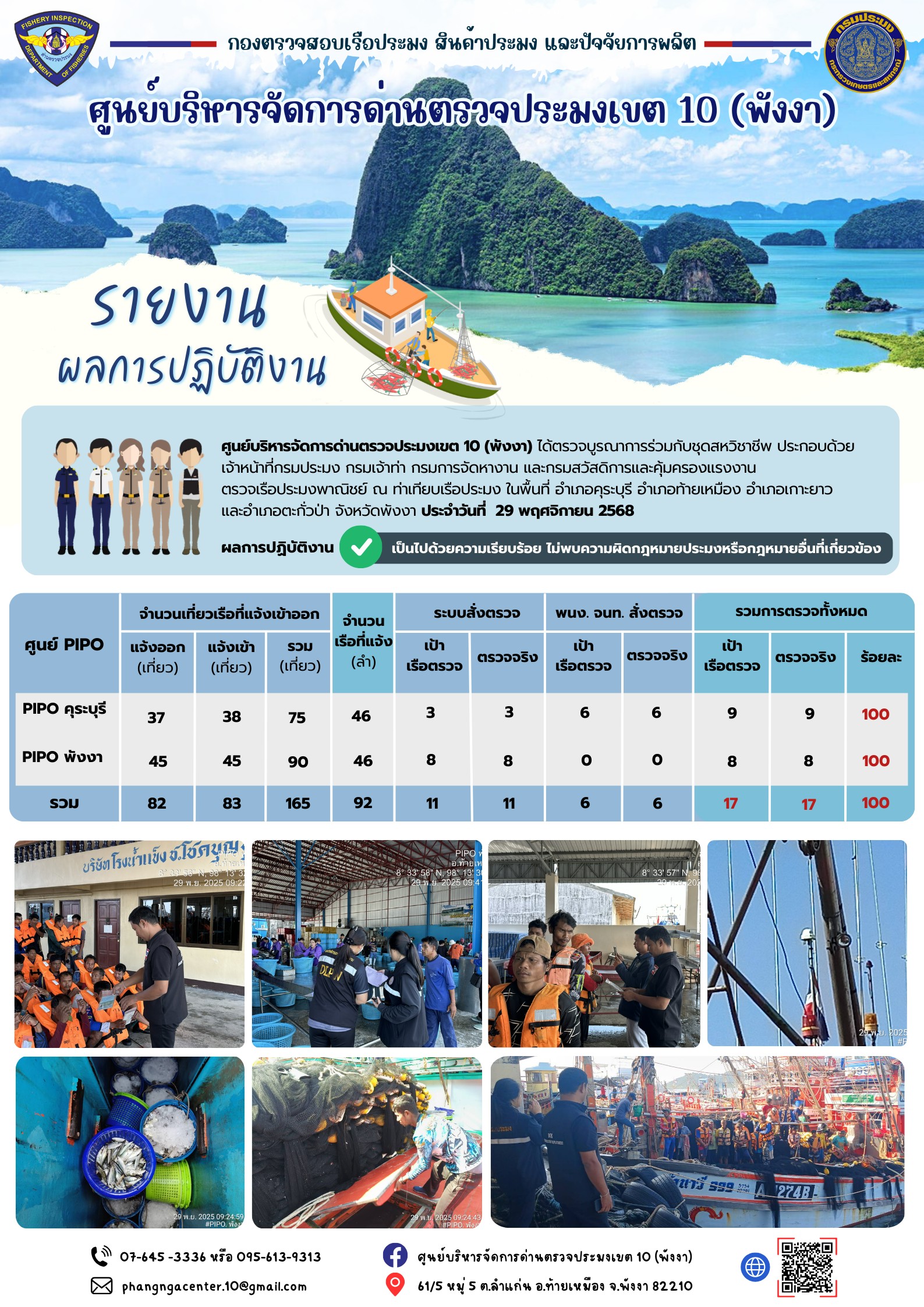 ข่าวประชาสัมพันธ์กิจกรรมการตรวจเรือประมงพาณิชย์แจ้งเข้า - ออก วันที่ 29 พฤศจิกายน 2568