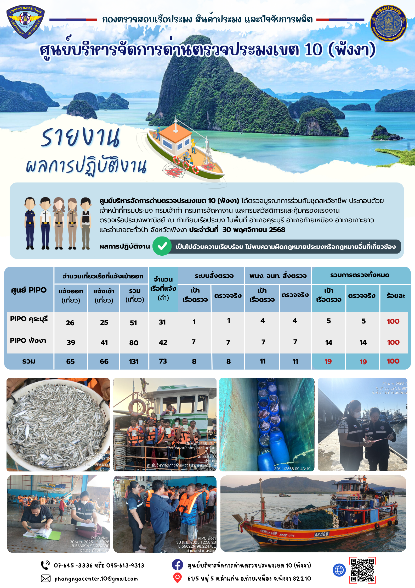 ข่าวประชาสัมพันธ์กิจกรรมการตรวจเรือประมงพาณิชย์แจ้งเข้า - ออก วันที่ 30 พฤศจิกายน 2568