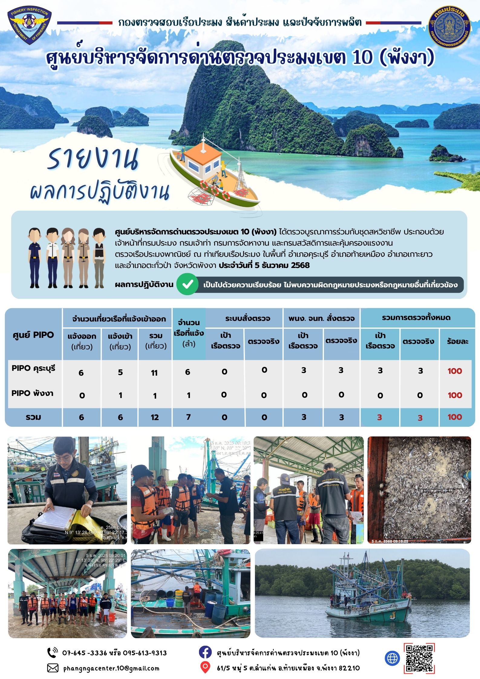ข่าวประชาสัมพันธ์กิจกรรมการตรวจเรือประมงพาณิชย์แจ้งเข้า - ออก วันที่ 5 ธันวาคม 2568