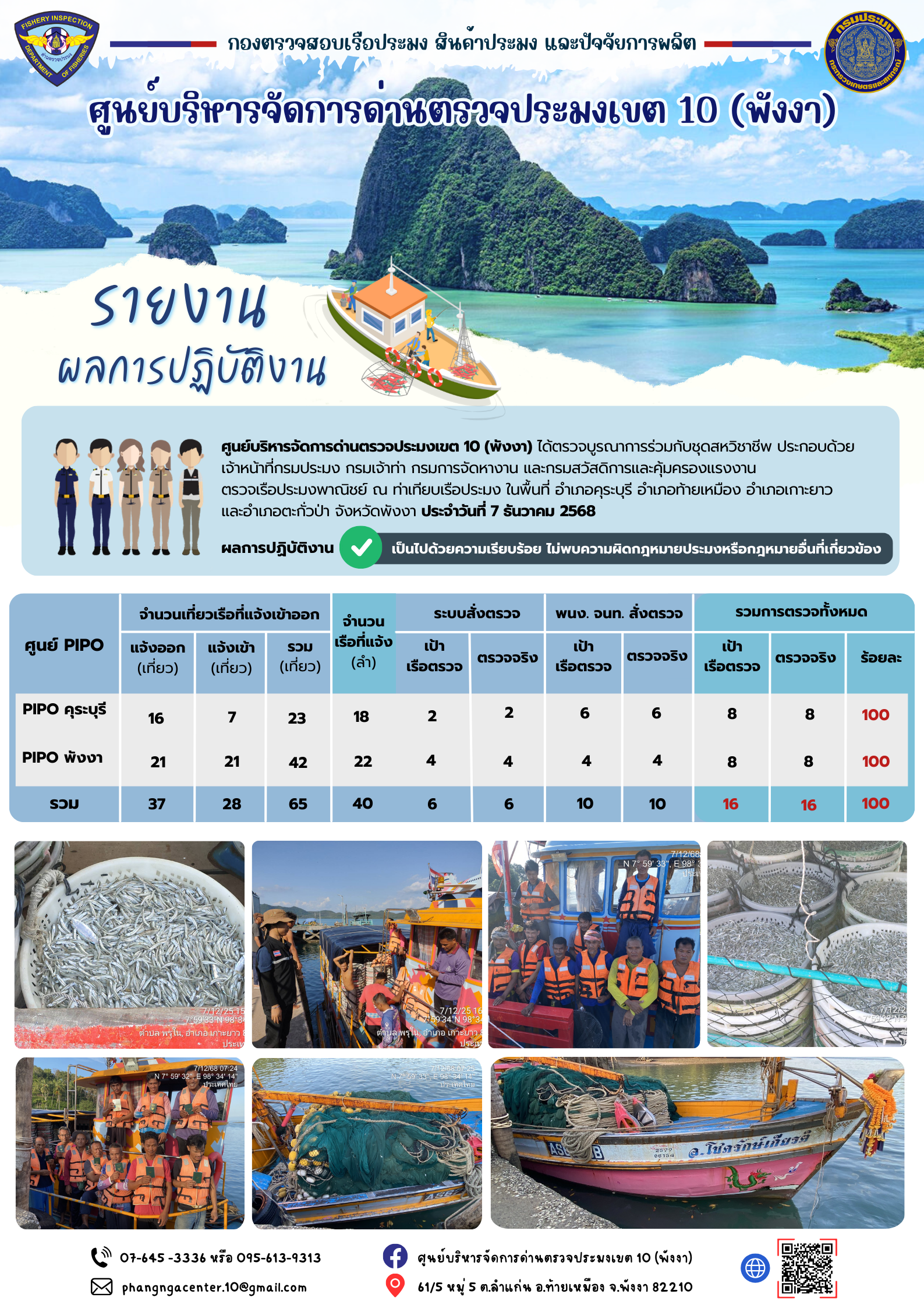 ข่าวประชาสัมพันธ์กิจกรรมการตรวจเรือประมงพาณิชย์แจ้งเข้า - ออก วันที่ 7 ธันวาคม 2568