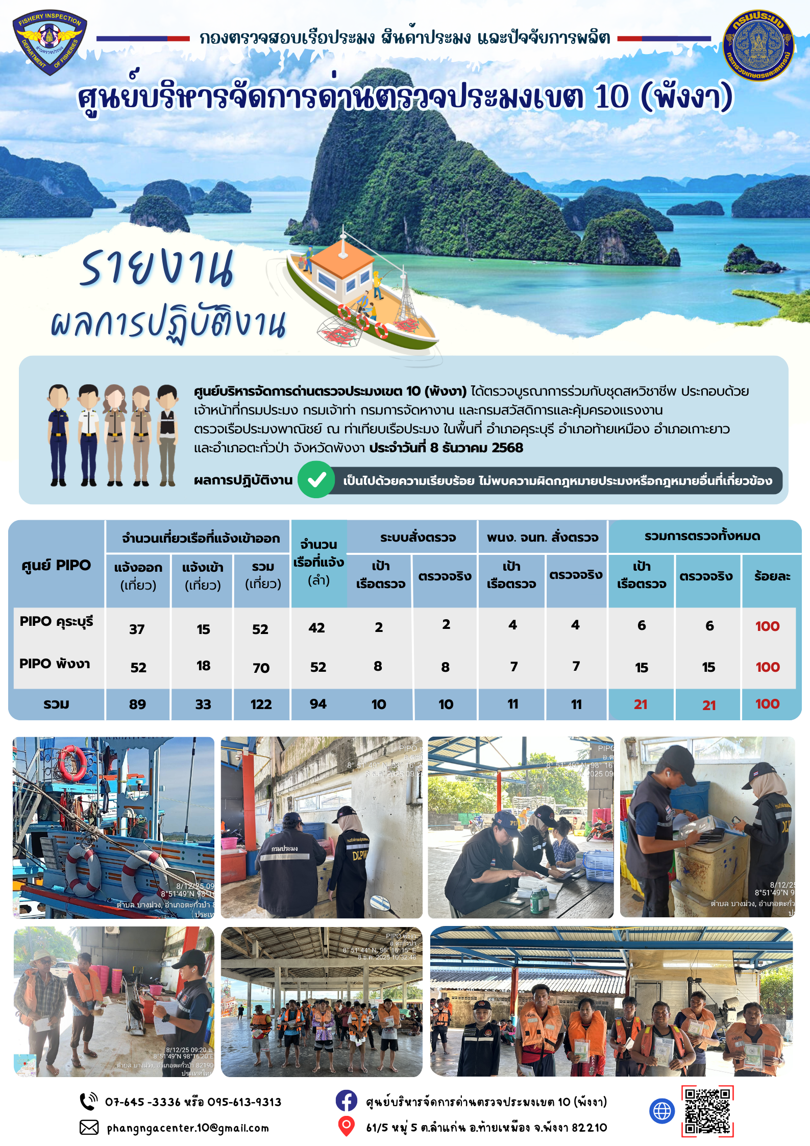 ข่าวประชาสัมพันธ์กิจกรรมการตรวจเรือประมงพาณิชย์แจ้งเข้า - ออก วันที่ 8 ธันวาคม 2568
