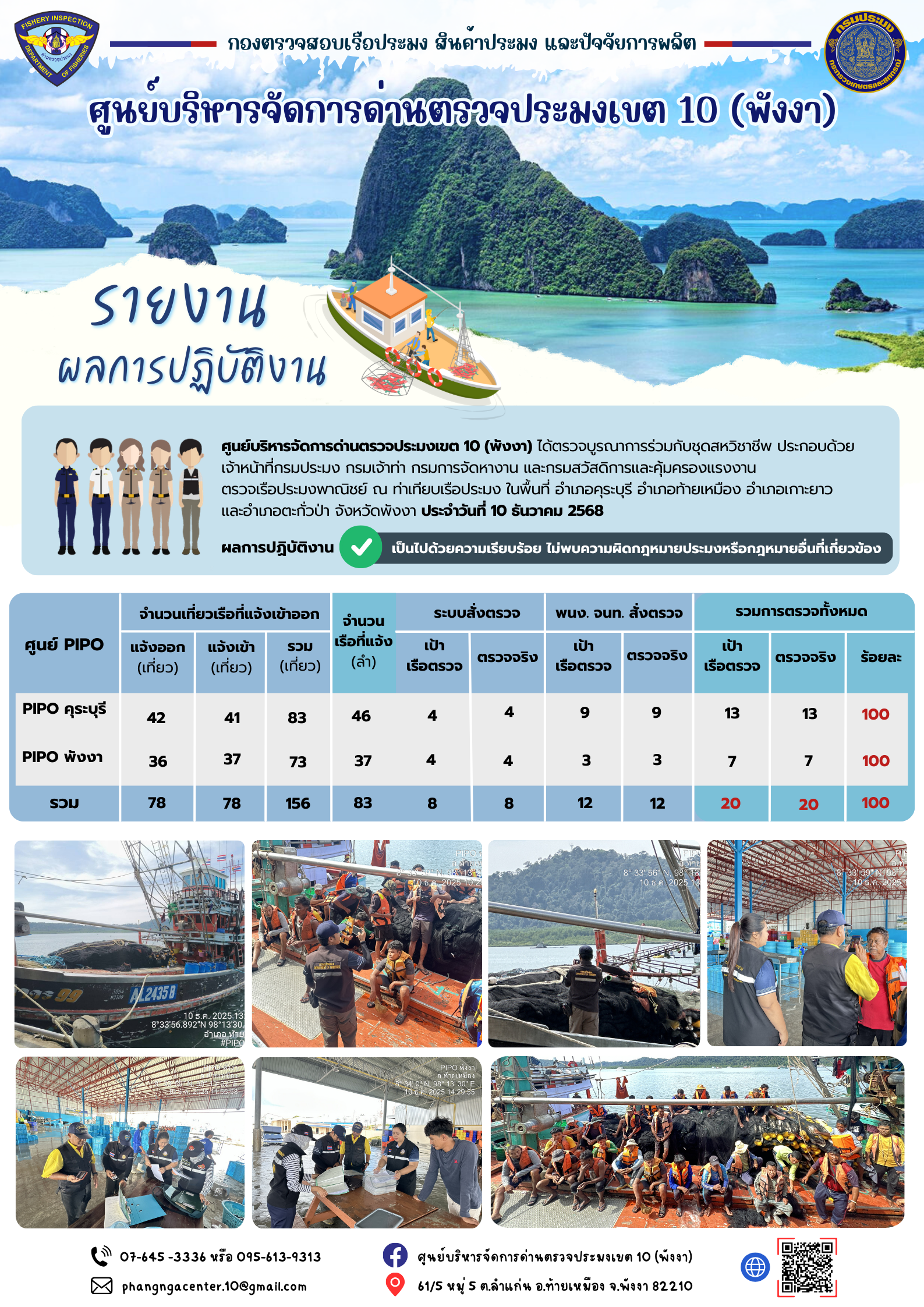 ข่าวประชาสัมพันธ์กิจกรรมการตรวจเรือประมงพาณิชย์แจ้งเข้า - ออก วันที่ 10 ธันวาคม 2568