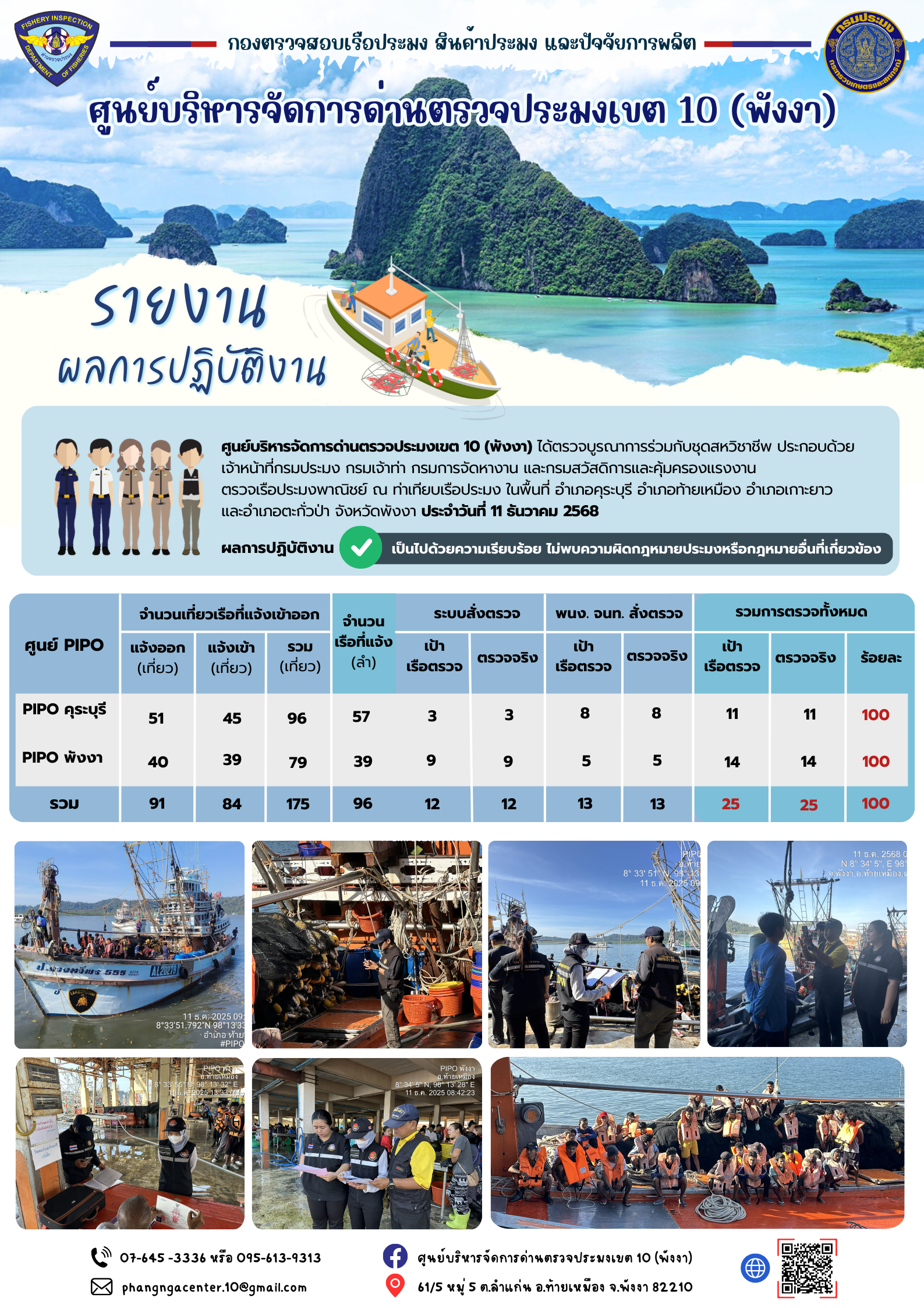 ข่าวประชาสัมพันธ์กิจกรรมการตรวจเรือประมงพาณิชย์แจ้งเข้า - ออก วันที่ 11 ธันวาคม 2568
