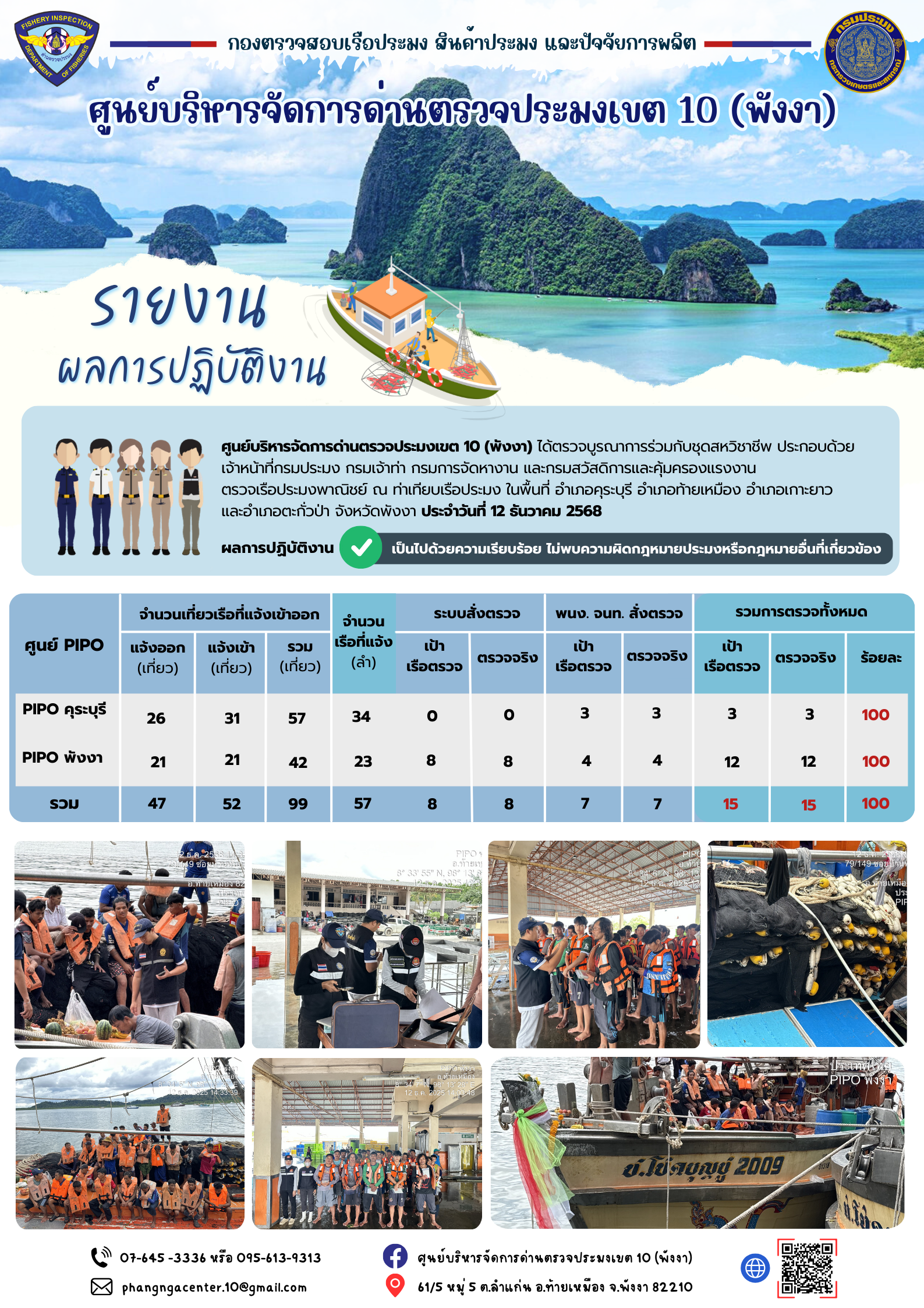 ข่าวประชาสัมพันธ์กิจกรรมการตรวจเรือประมงพาณิชย์แจ้งเข้า - ออก วันที่ 12 ธันวาคม 2568