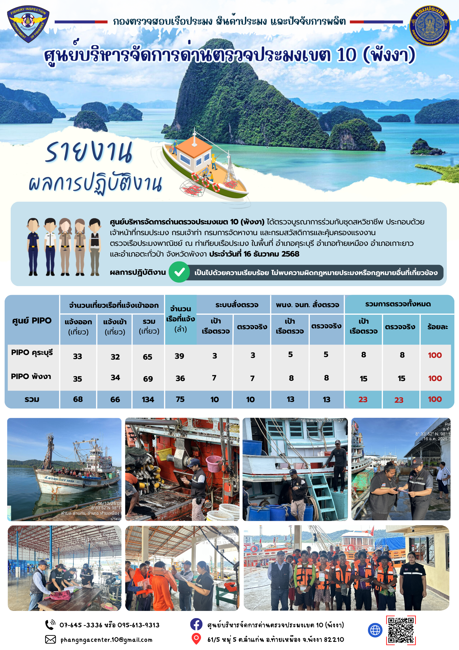 ข่าวประชาสัมพันธ์กิจกรรมการตรวจเรือประมงพาณิชย์แจ้งเข้า - ออก วันที่ 16 ธันวาคม 2568