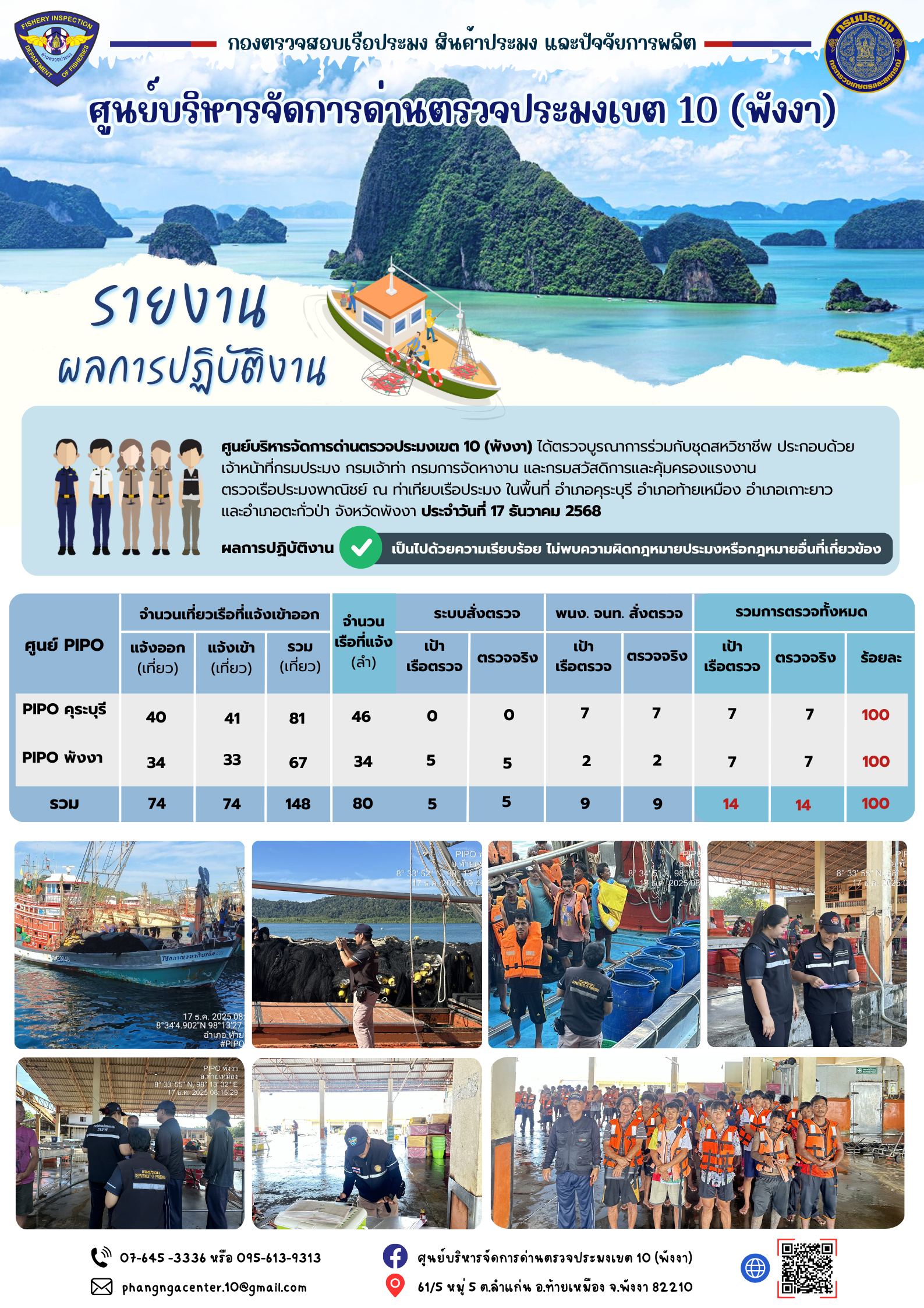 ข่าวประชาสัมพันธ์กิจกรรมการตรวจเรือประมงพาณิชย์แจ้งเข้า - ออก วันที่ 17 ธันวาคม 2568