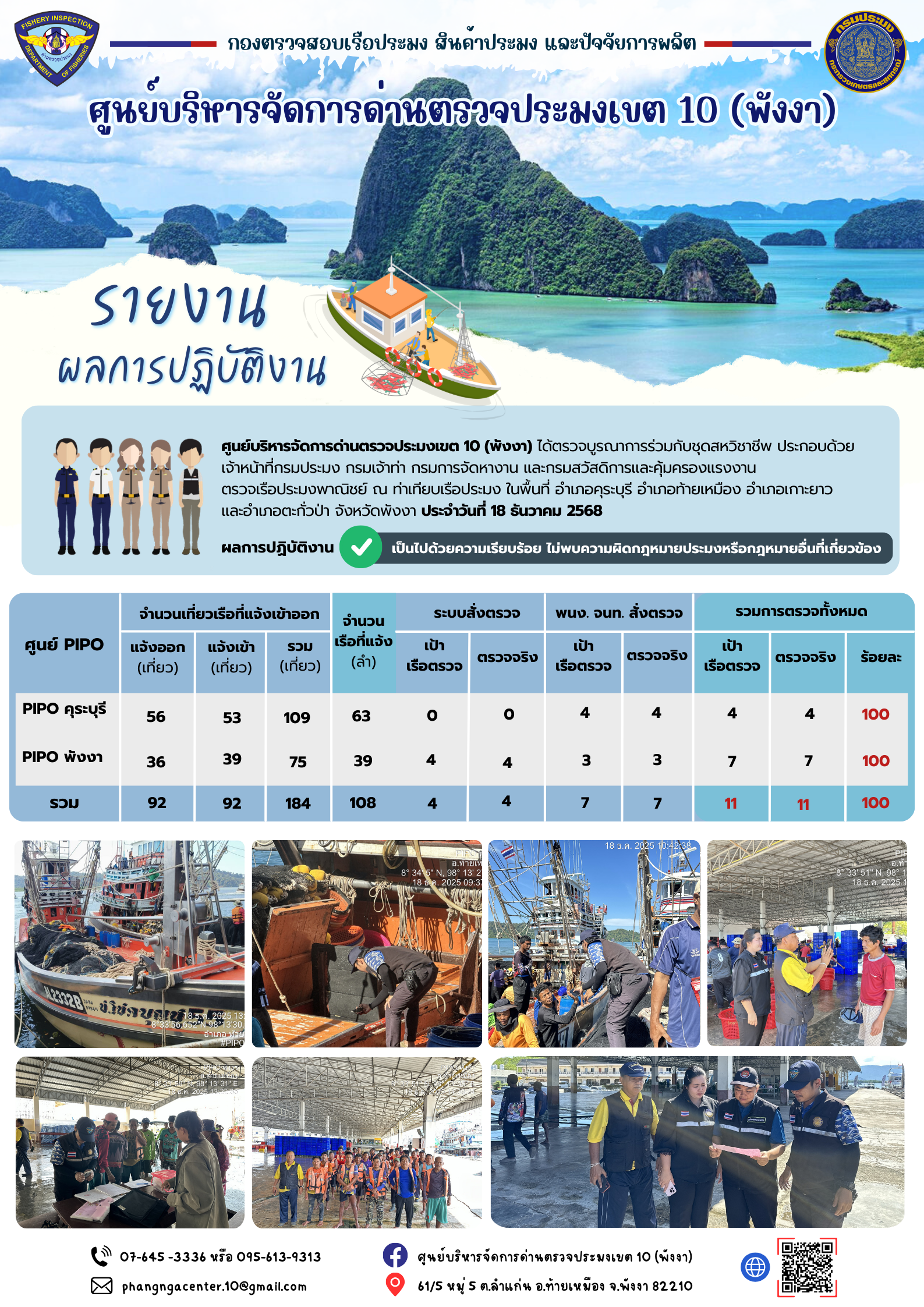 ข่าวประชาสัมพันธ์กิจกรรมการตรวจเรือประมงพาณิชย์แจ้งเข้า - ออก วันที่ 18 ธันวาคม 2568