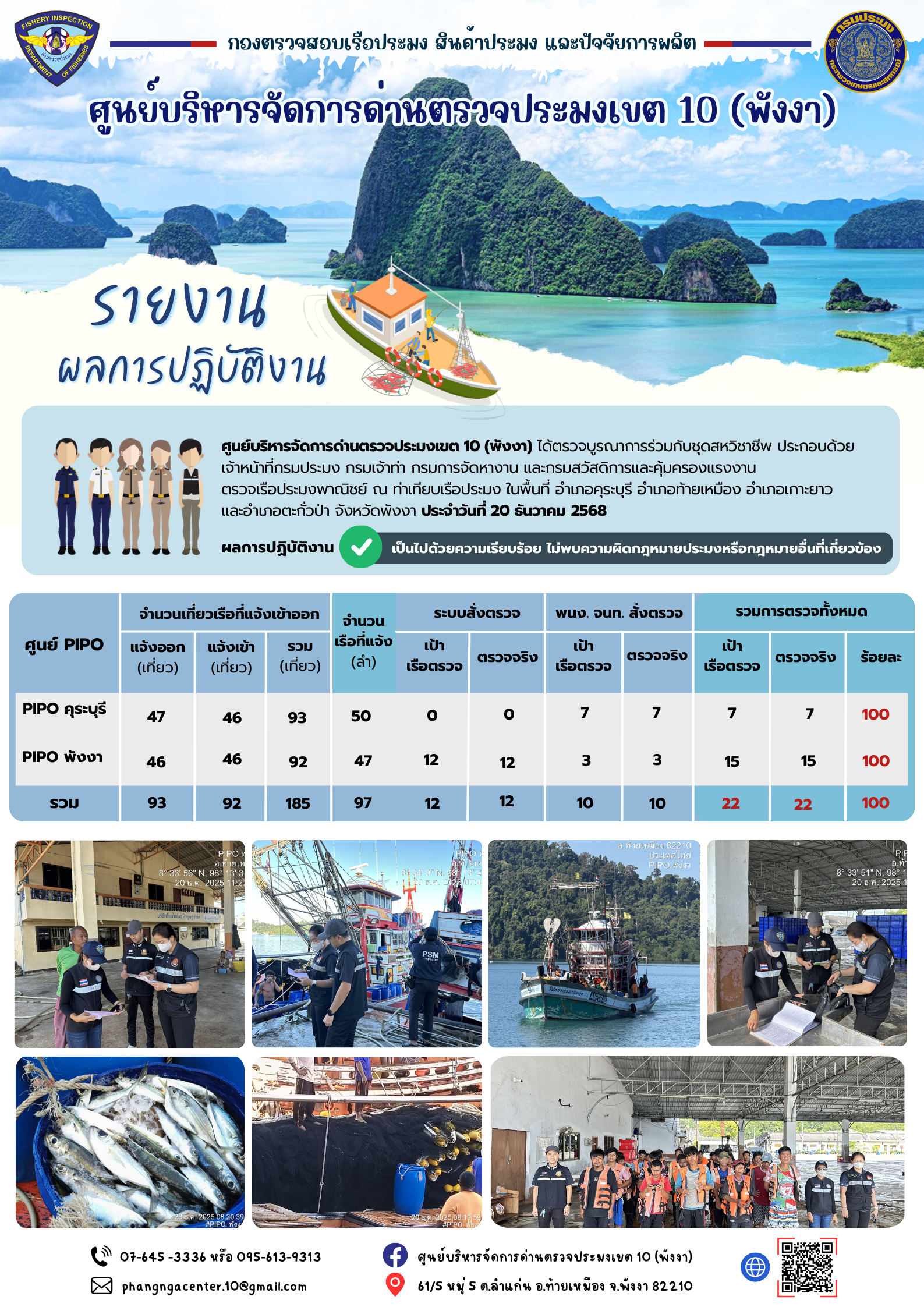 ข่าวประชาสัมพันธ์กิจกรรมการตรวจเรือประมงพาณิชย์แจ้งเข้า - ออก วันที่ 20 ธันวาคม 2568