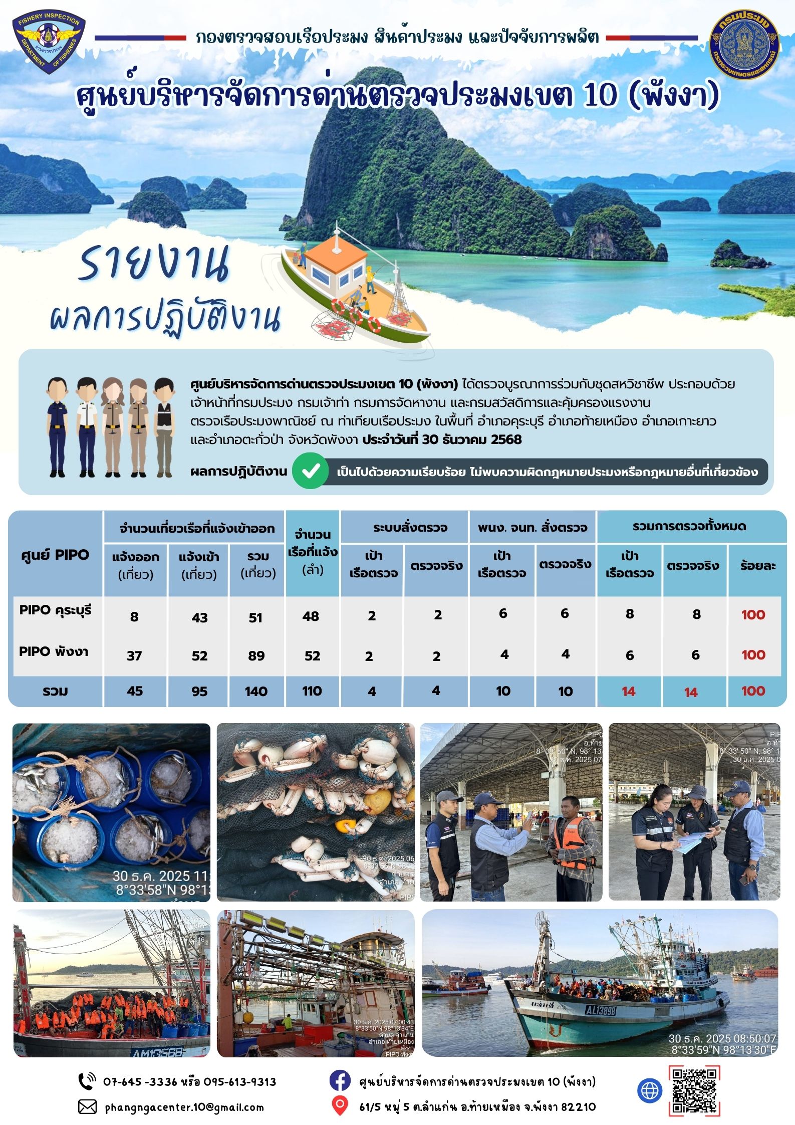 ข่าวประชาสัมพันธ์กิจกรรมการตรวจเรือประมงพาณิชย์แจ้งเข้า - ออก วันที่ 30 ธันวาคม 2568