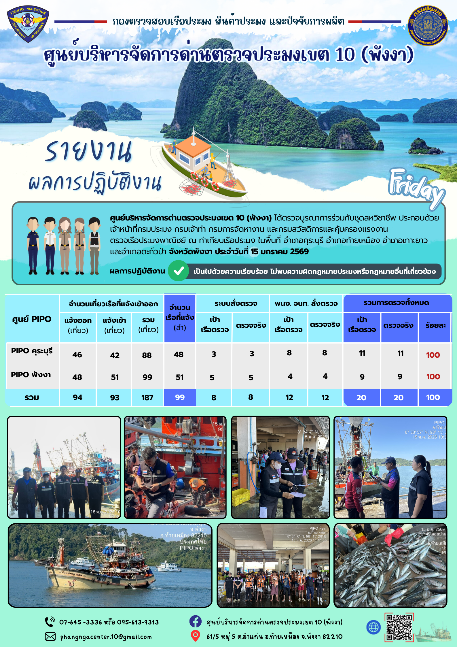 ข่าวประชาสัมพันธ์กิจกรรมการตรวจเรือประมงพาณิชย์แจ้งเข้า - ออก วันที่ 15 มกราคม 2569