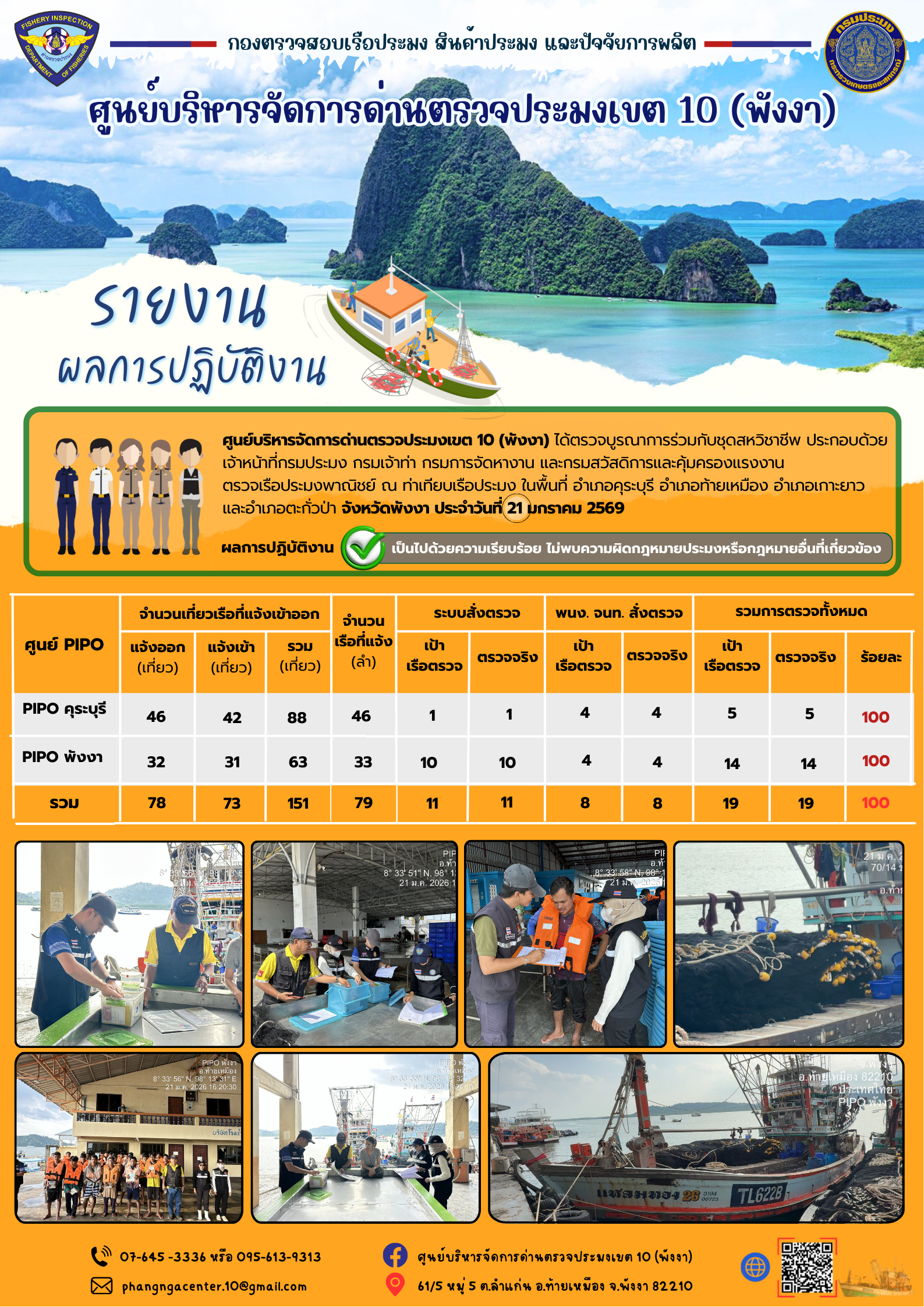 ข่าวประชาสัมพันธ์กิจกรรมการตรวจเรือประมงพาณิชย์แจ้งเข้า - ออก วันที่ 21 มกราคม 2569