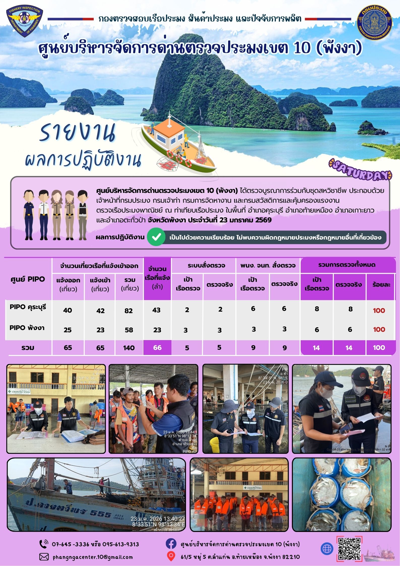 ข่าวประชาสัมพันธ์กิจกรรมการตรวจเรือประมงพาณิชย์แจ้งเข้า - ออก วันที่ 23 มกราคม 2569